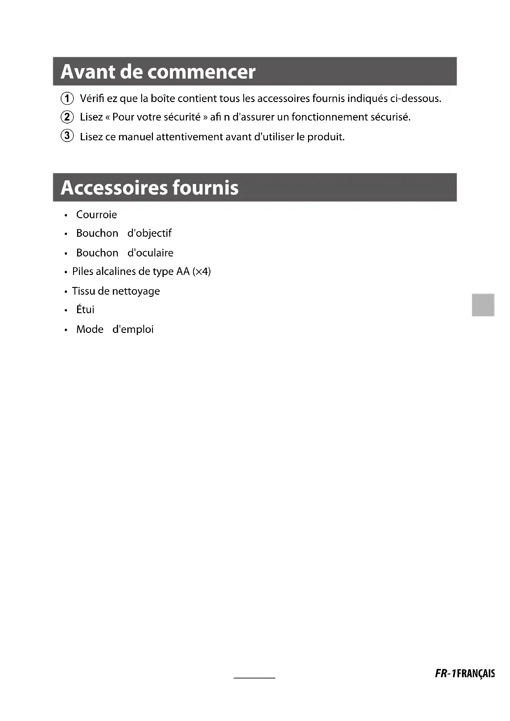 Lisez ce manuel attentivement avant d'utiliser le produit. Accessoires fournis