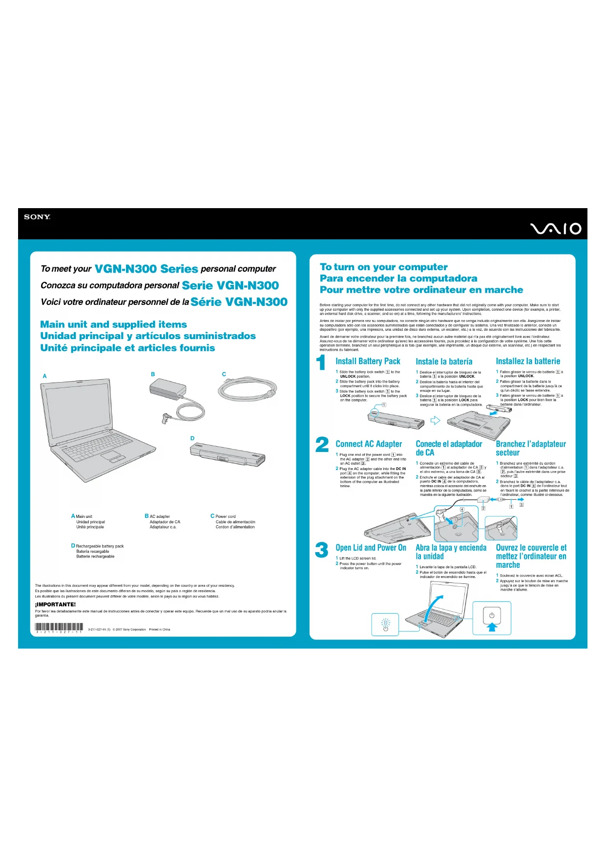 Retrouvez gratuitement la notice de l'appareil Vaio VGNN385QE SONY au format PDF.
