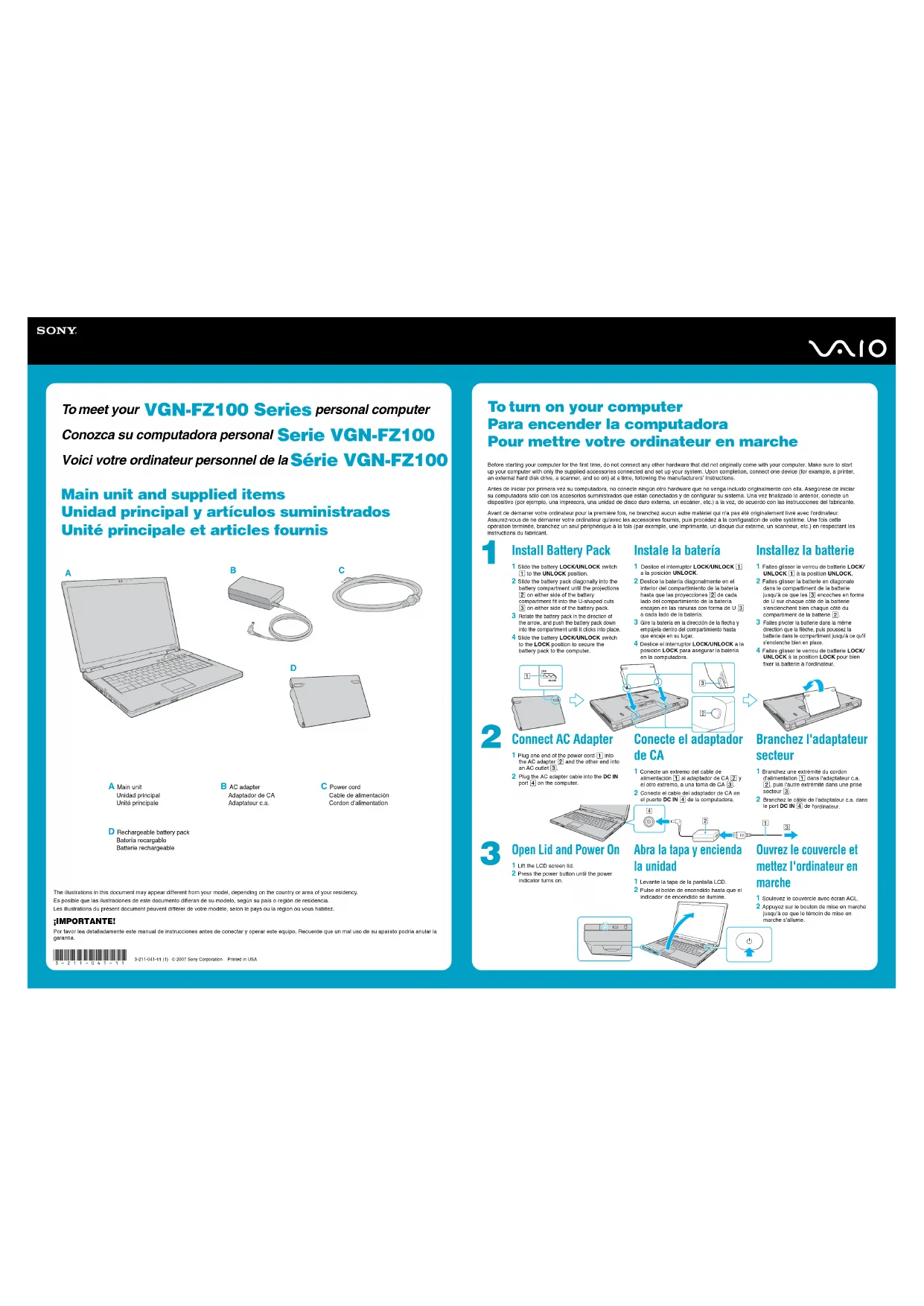 Retrouvez gratuitement la notice de l'appareil Vaio VGNFZ140QE SONY au format PDF.