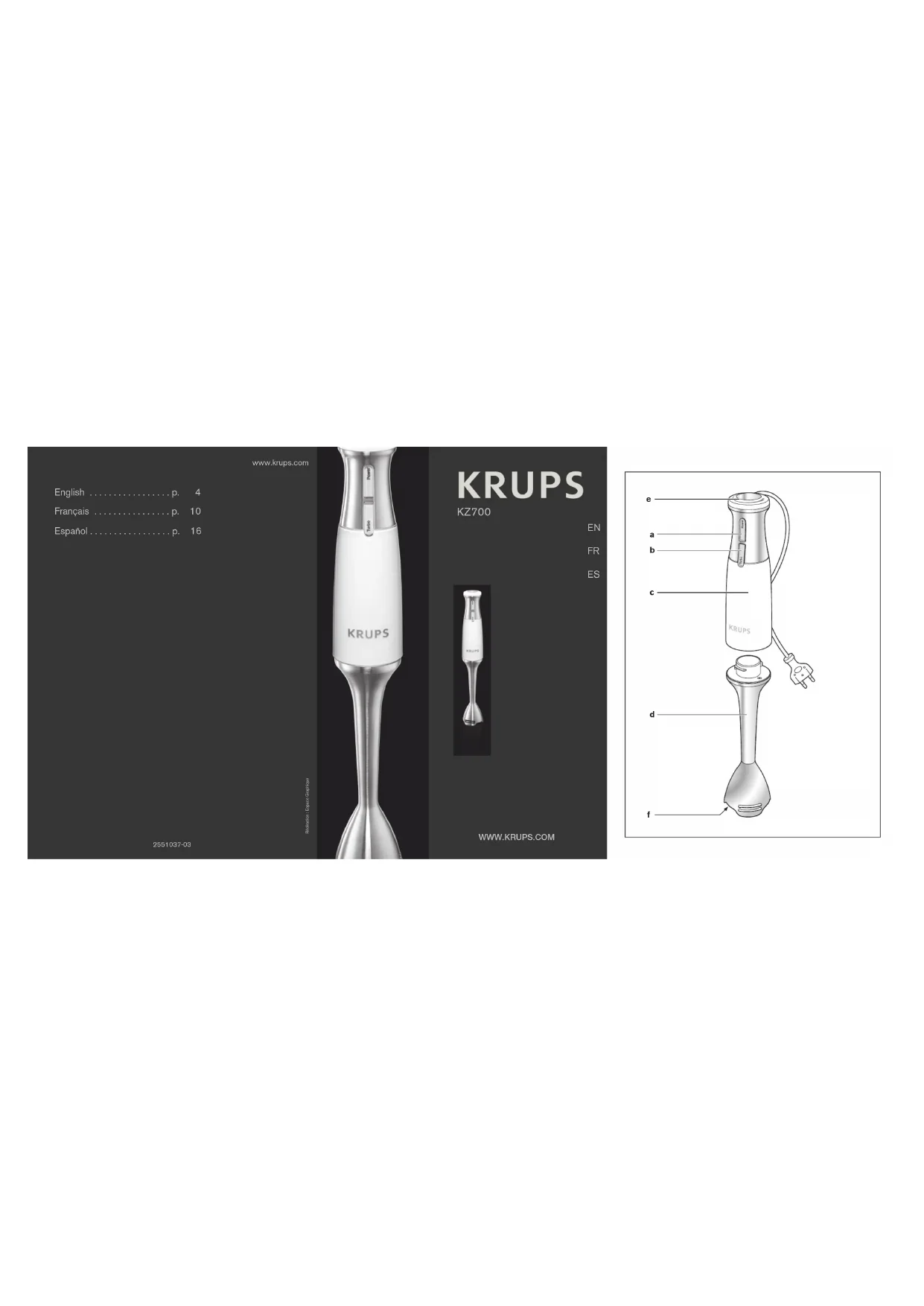 www.krups.com 2551037-03 English . . . . . . . . . . . . . . . . . p. 4 Français . . . . . . . . . . . . . . . . p. 10 Español . . . . . . . . . . . . . . . . . p. 16 Réalisation : Espace Graphique