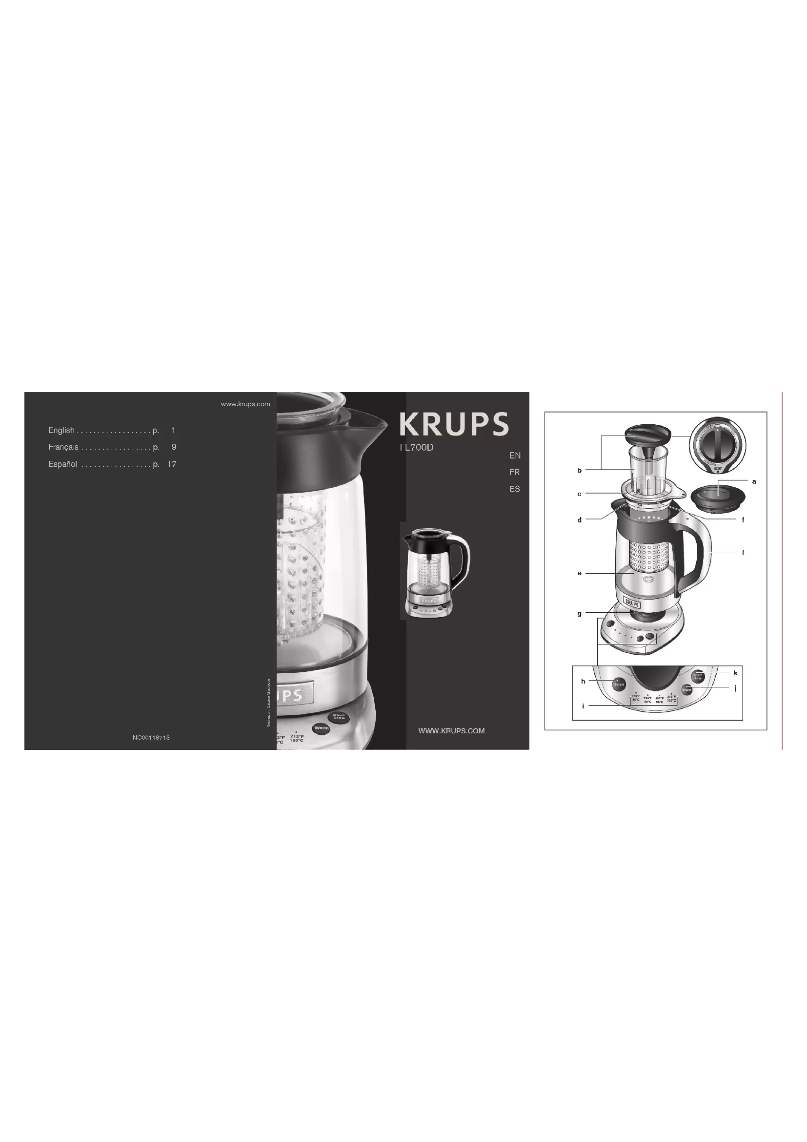 www.krups.comNC00118713 English . . . . . . . . . . . . . . . . . . p. 1 Français . . . . . . . . . . . . . . . . . p. 9 Español . . . . . . . . . . . . . . . . . p. 17 Réalisation : Espace Graphique