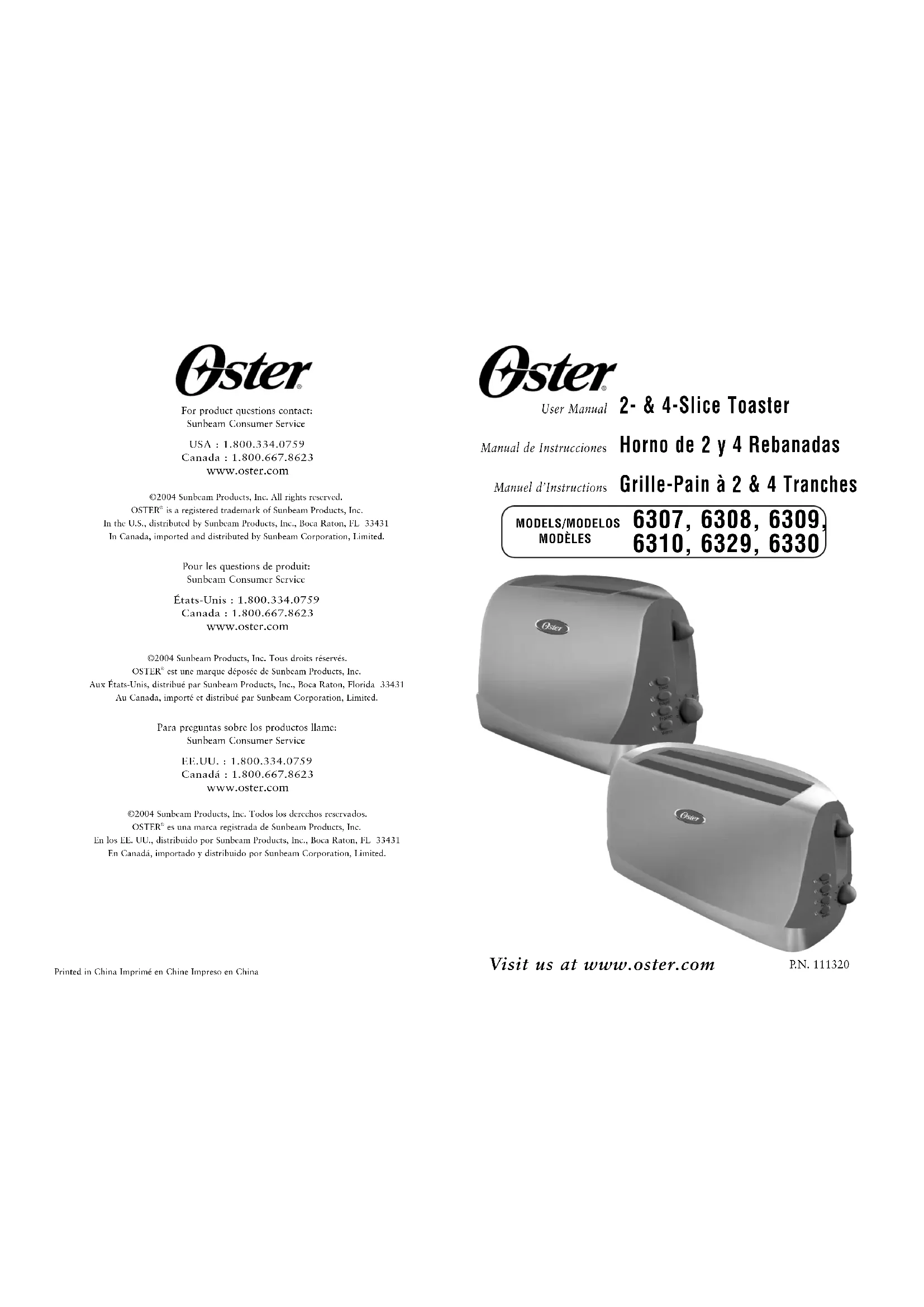 IENVENUE Félicitations pour votre achat d’un Grille-Pain OSTER ! Pour en savoir plussur les produits OSTER , veuillez visiter notre site web à www.oster.com.