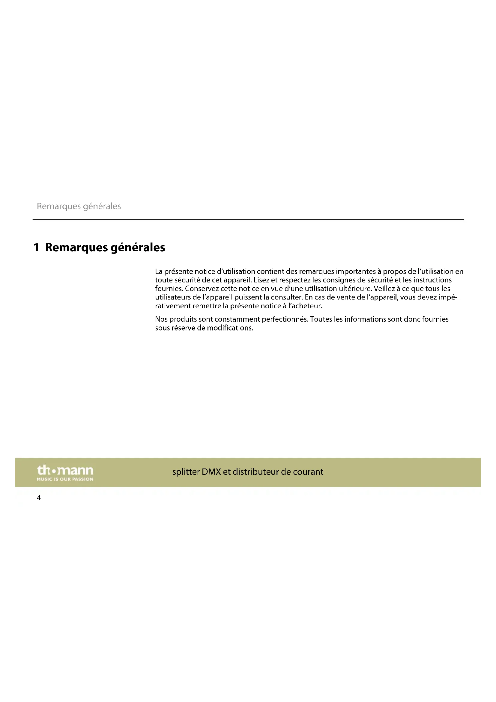 Sur notre site (www.thomann.de) vous trouverez beaucoup plus d'informations et de détails sur les points suivants : Téléchargement Cette notice d'utilisation est également disponible sous forme de fichier PDF à télécharger. Recherche par mot- clé Utilisez dans la version électronique la fonction de recherche pour trouver rapidement les sujets qui vous intéressent. Guides en ligne Nos guides en ligne fournissent des informations détaillées sur les bases et termes techniques. Conseils personnalisés Pour obtenir des conseils, veuillez contacter notre hotline technique. Service Si vous avez des problèmes avec l'appareil, notre service clients sera heureux de vous aider. Remarques générales