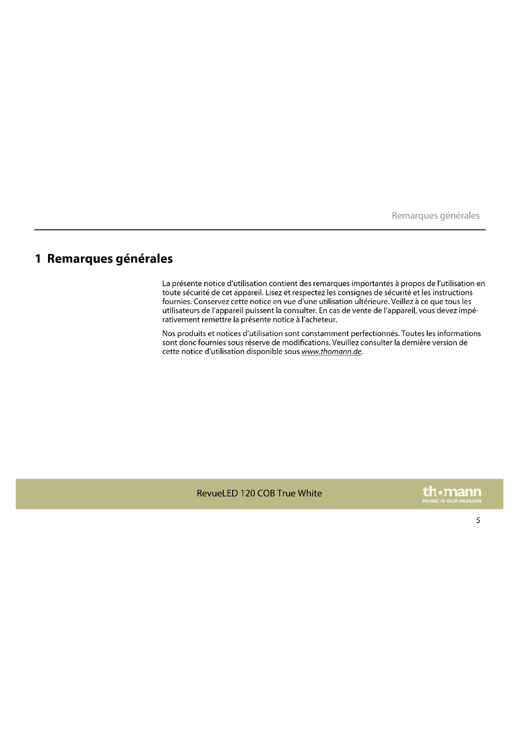Nos produits et notices d'utilisation sont constamment perfectionnés. Toutes les informations sont donc fournies sous réserve de modifications. Veuillez consulter la dernière version de cette notice d'utilisation disponible sous www.thomann.de.