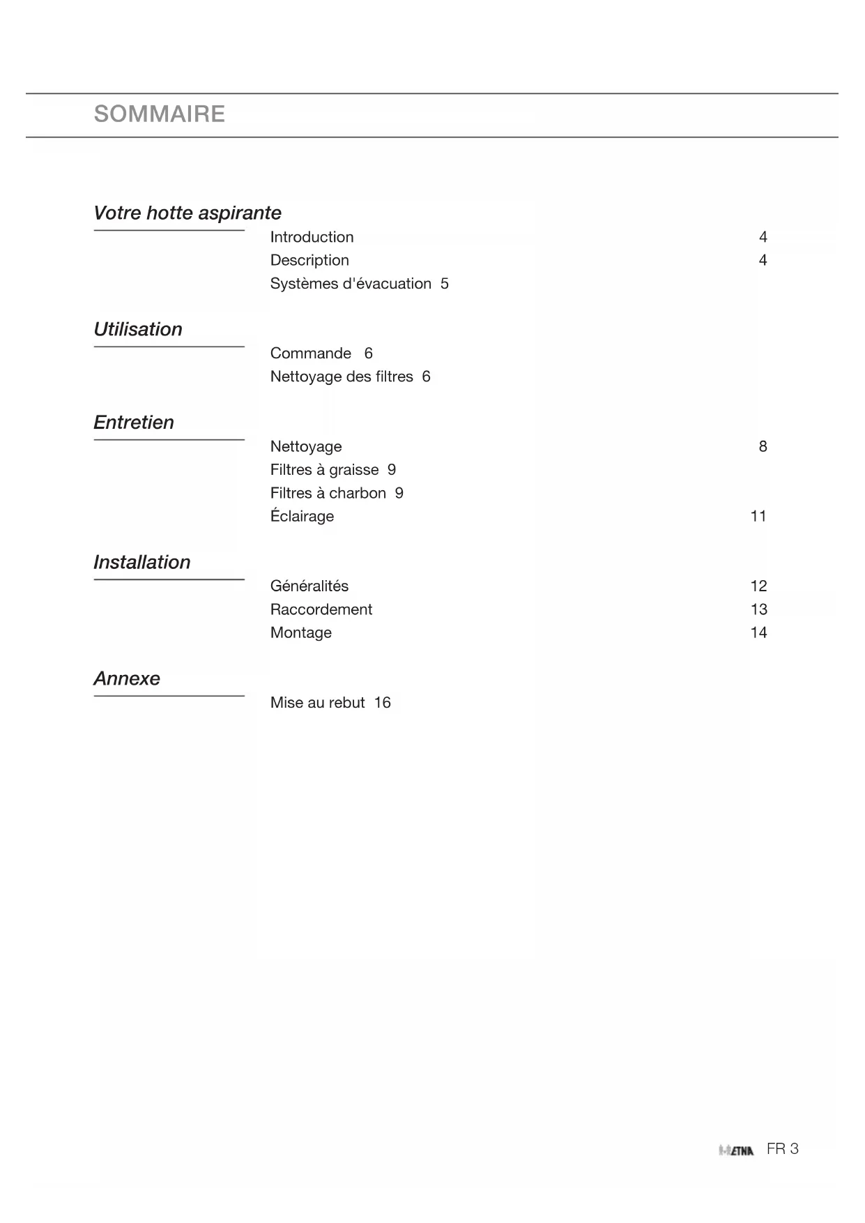 HC0003 - Hotte ETNA - Notice d'utilisation et mode d'emploi gratuit