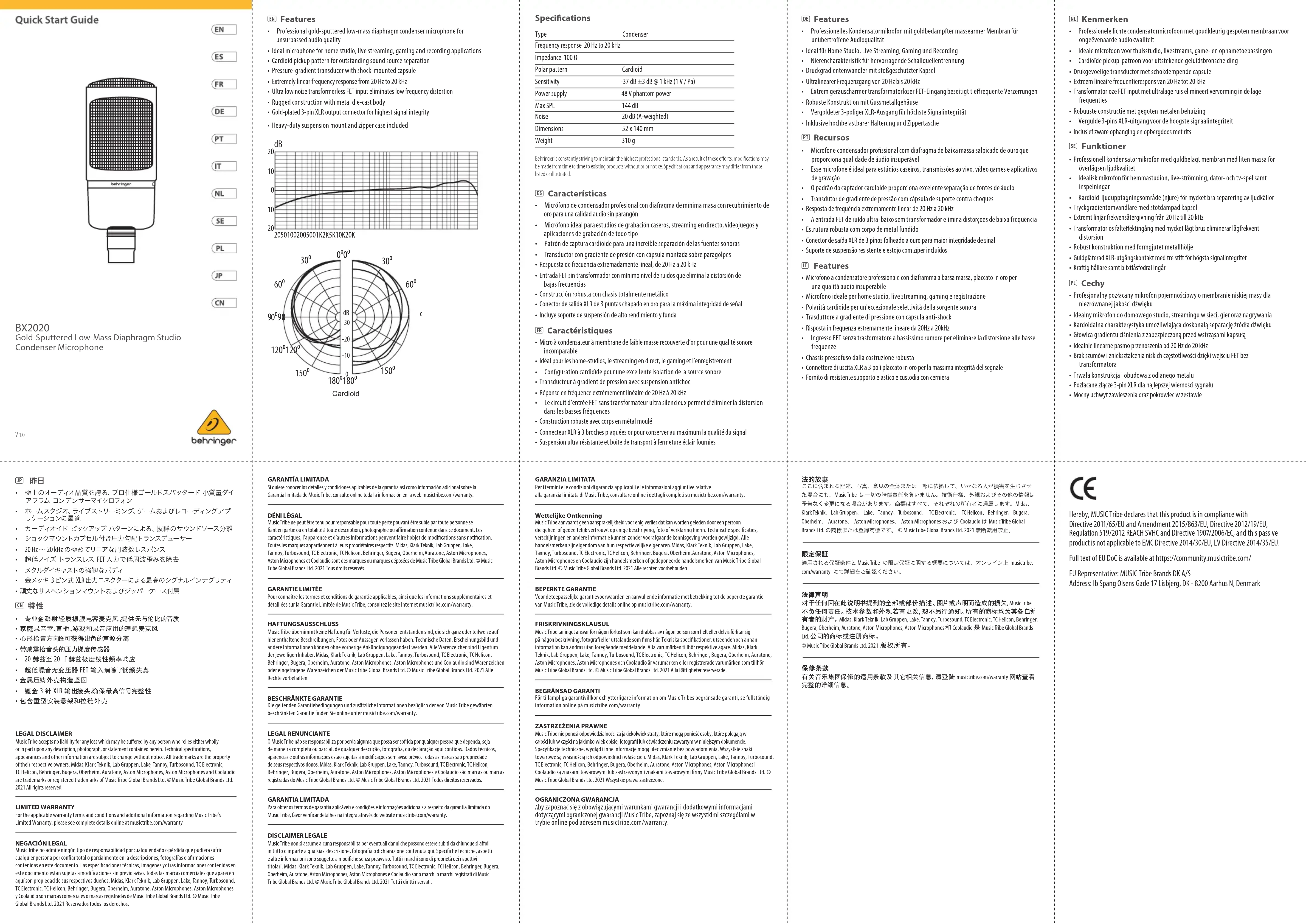 BX2020 - Microphone BEHRINGER - Notice d'utilisation et mode d'emploi gratuit