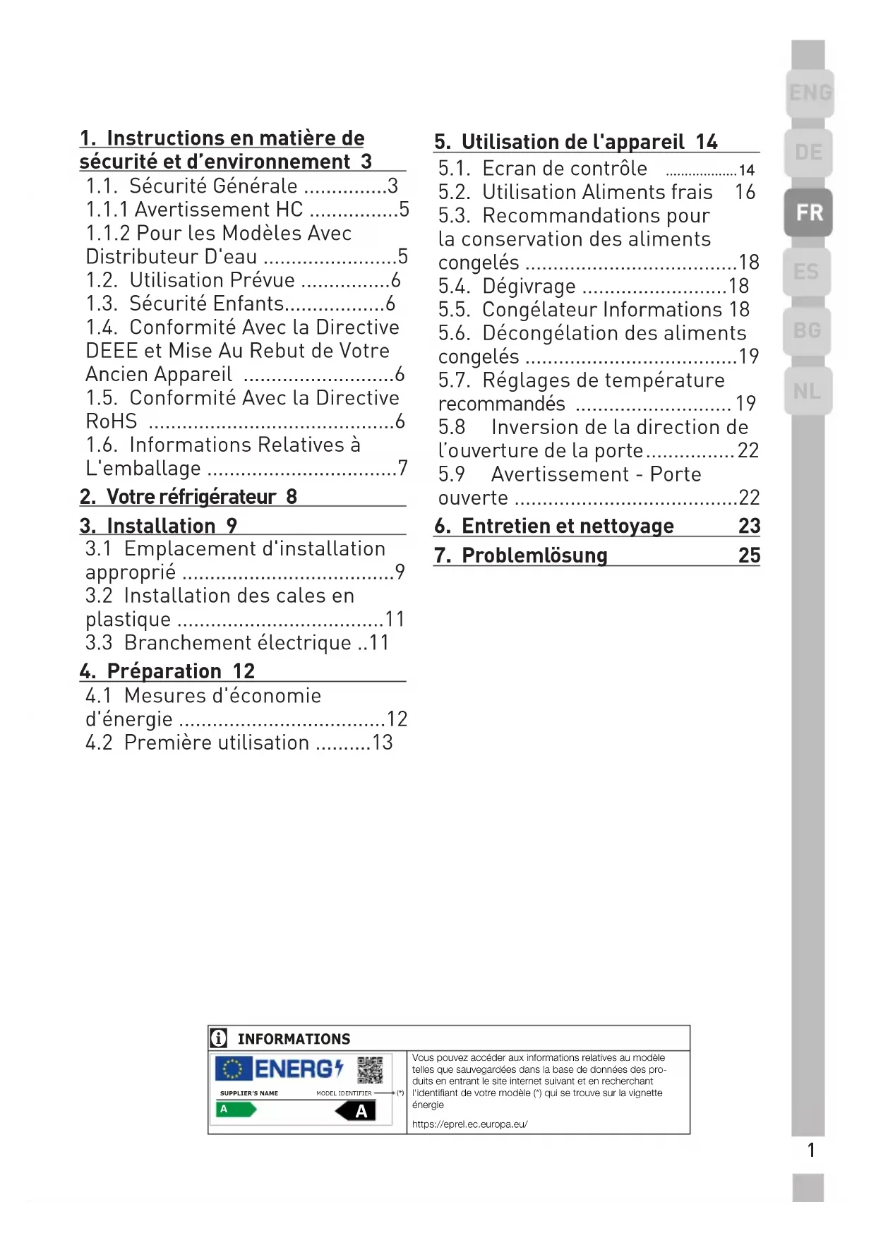 2. Votre réfrigérateur 8