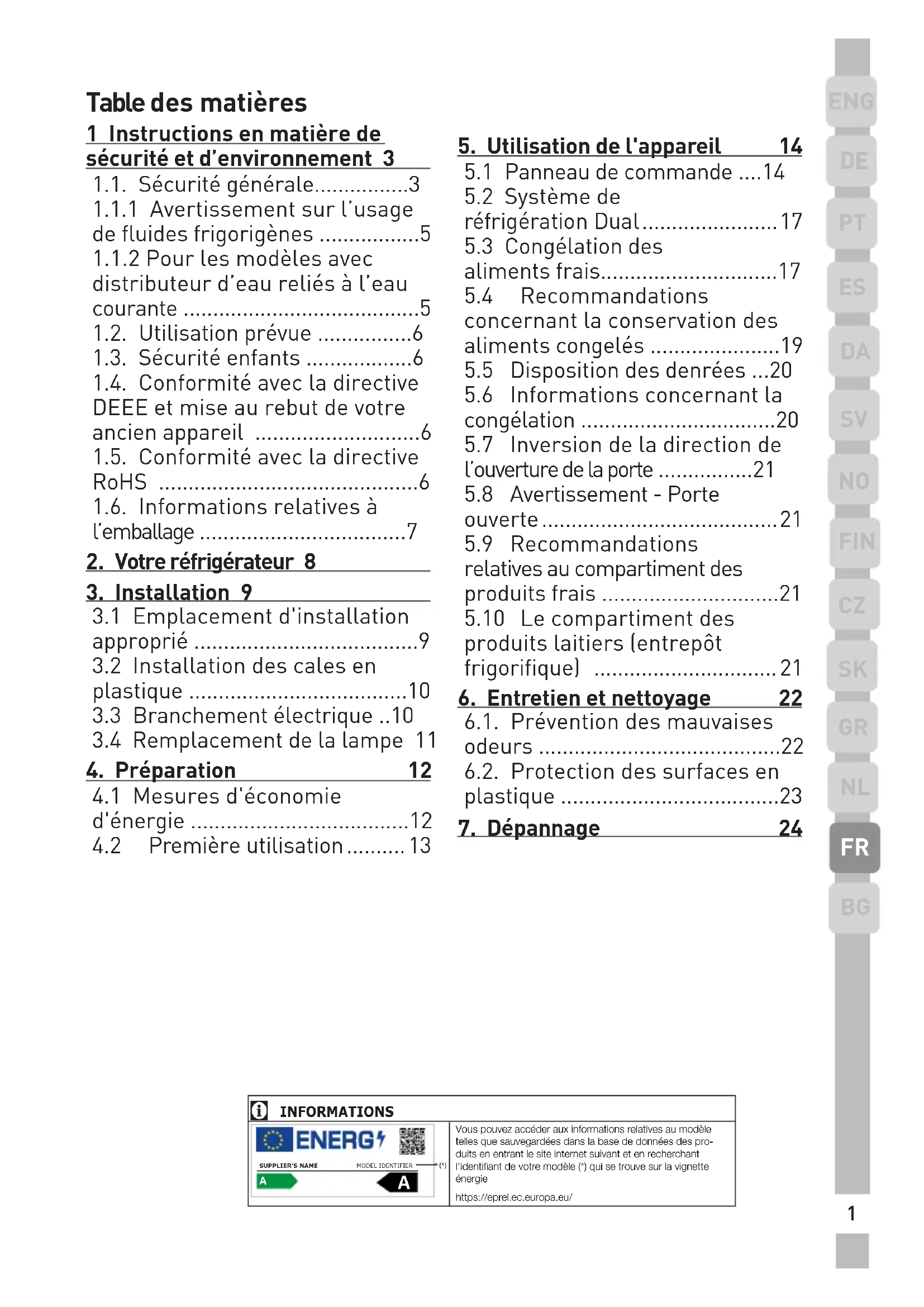 réfrigération Dual .......................17