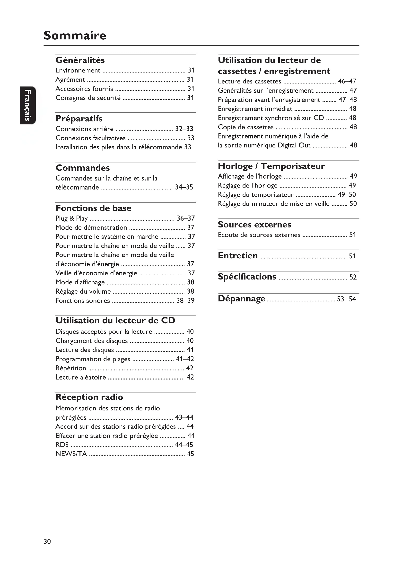 - Utilisation du lecteur de cassettes / enregistrement Lecture des cassettes p. 46