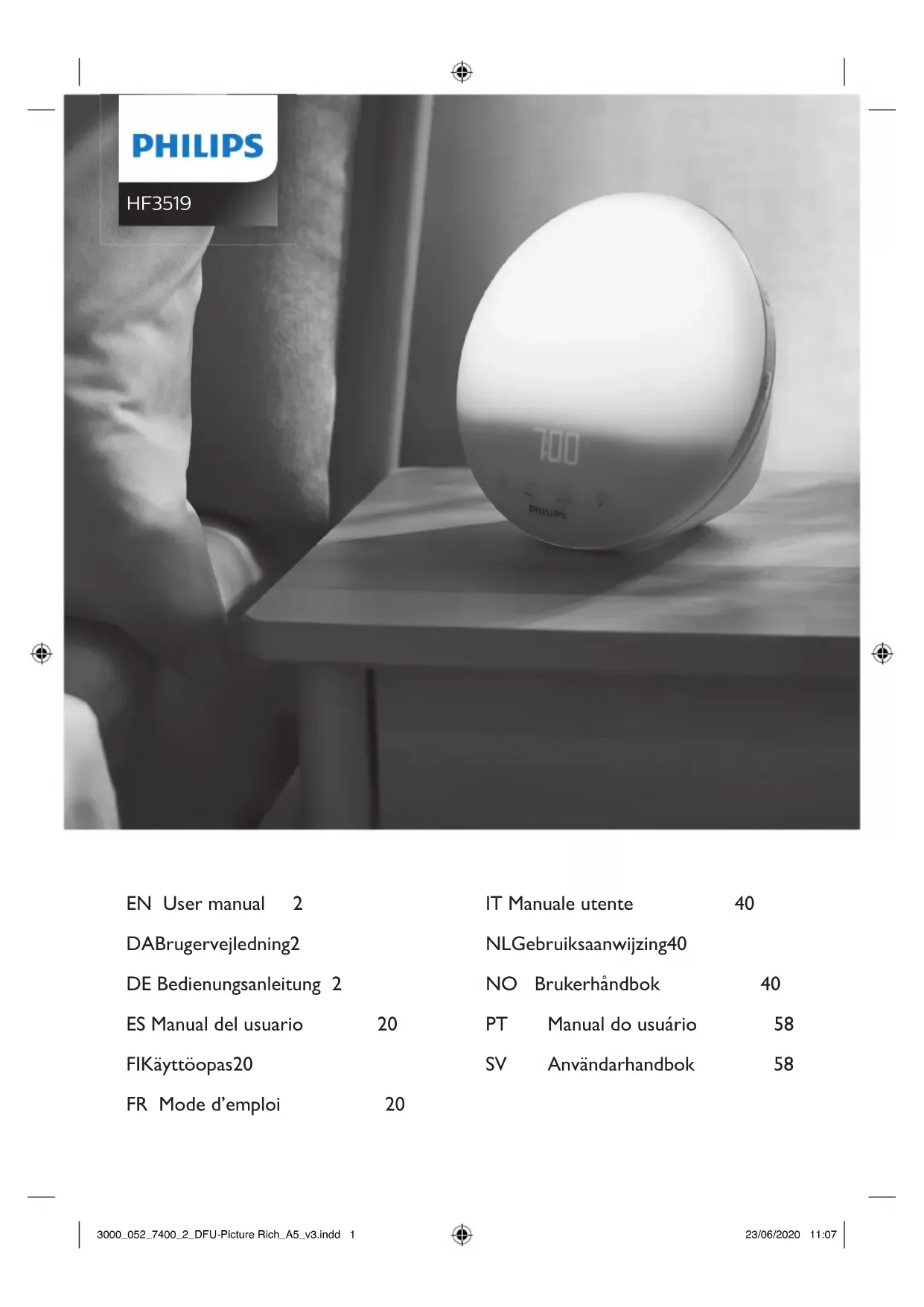 Retrouvez gratuitement la notice de l'appareil SmartSleep Wakeup Light HF3519 PHILIPS au format PDF.