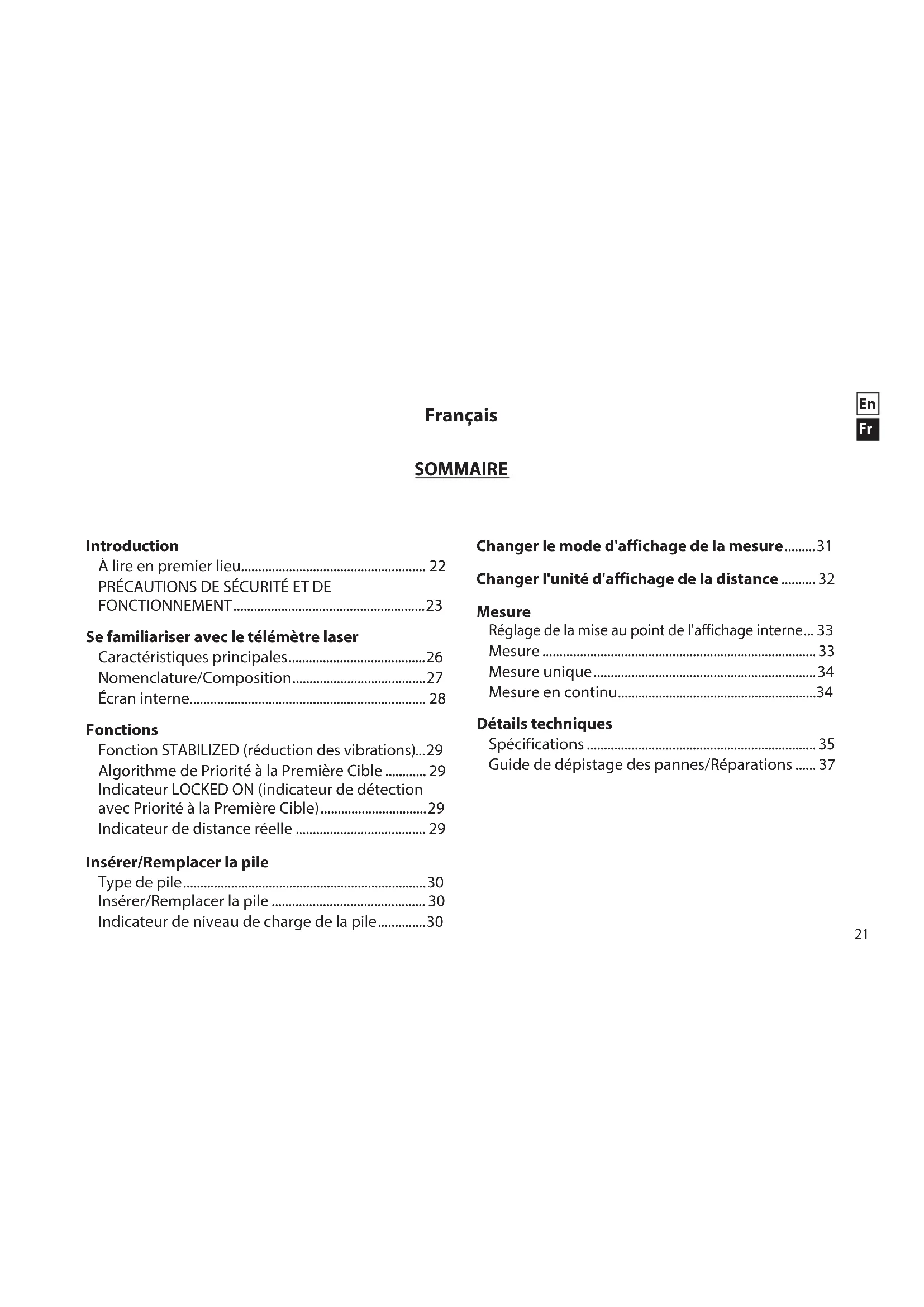- Le réglage est enregistré même lorsque le télémètre laser est désactivé.32