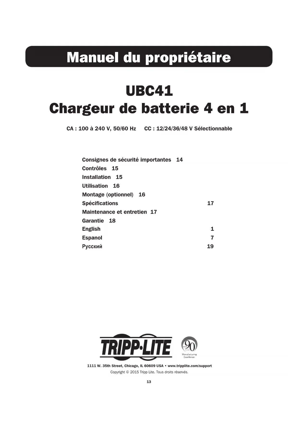 UBC41 - Chargeur de batterie Tripp Lite - Notice d'utilisation et mode d'emploi gratuit