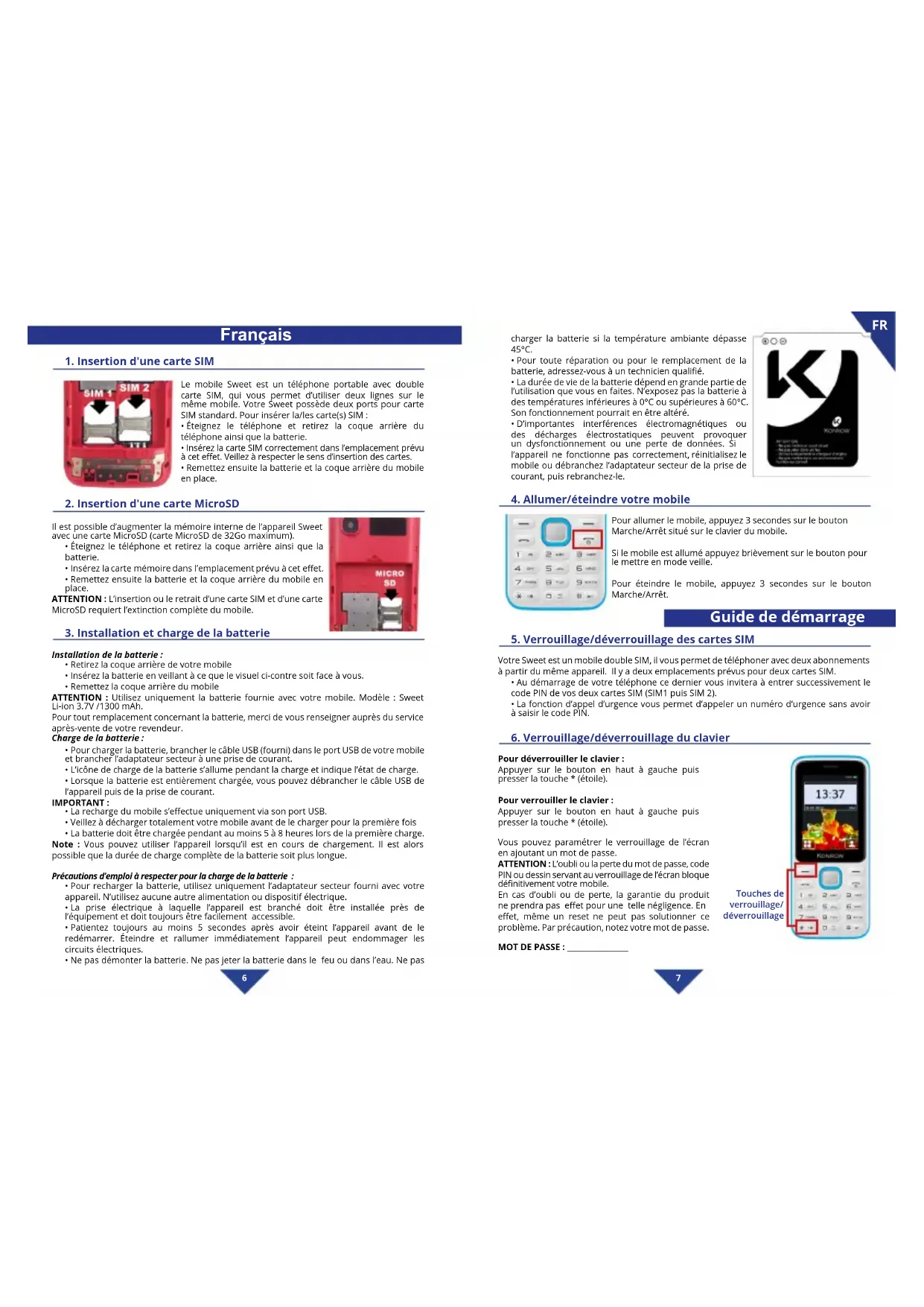 Votre Sweet est un mobile double SIM, il vous permet de téléphoner avec deux abonnements à partir du même appareil. Il y a deux emplacements prévus pour deux cartes SIM.