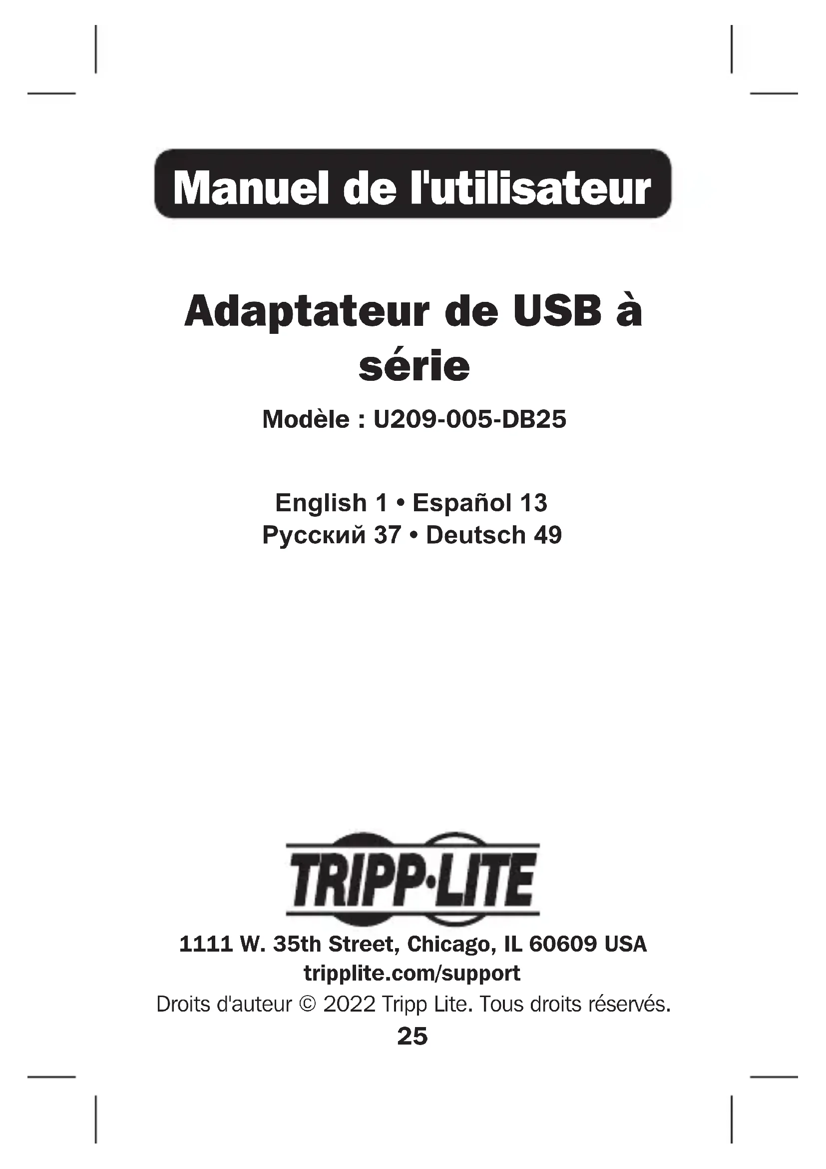 MODE D'EMPLOI U209005DB25 Tripp Lite
