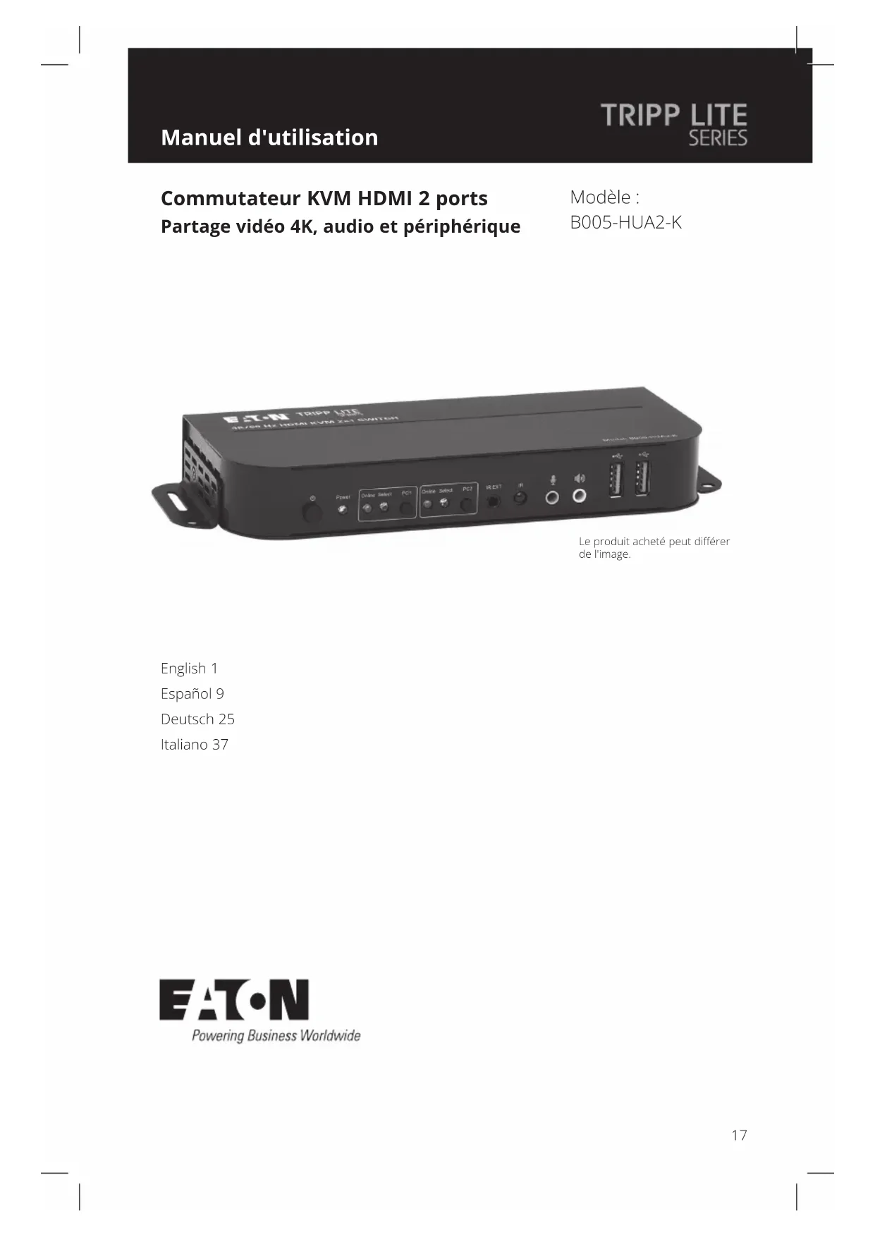 Commutateur KVM HDMI 2 ports Partage vidéo 4K, audio et périphérique English 1 Español 9 Deutsch 25 Italiano 3718