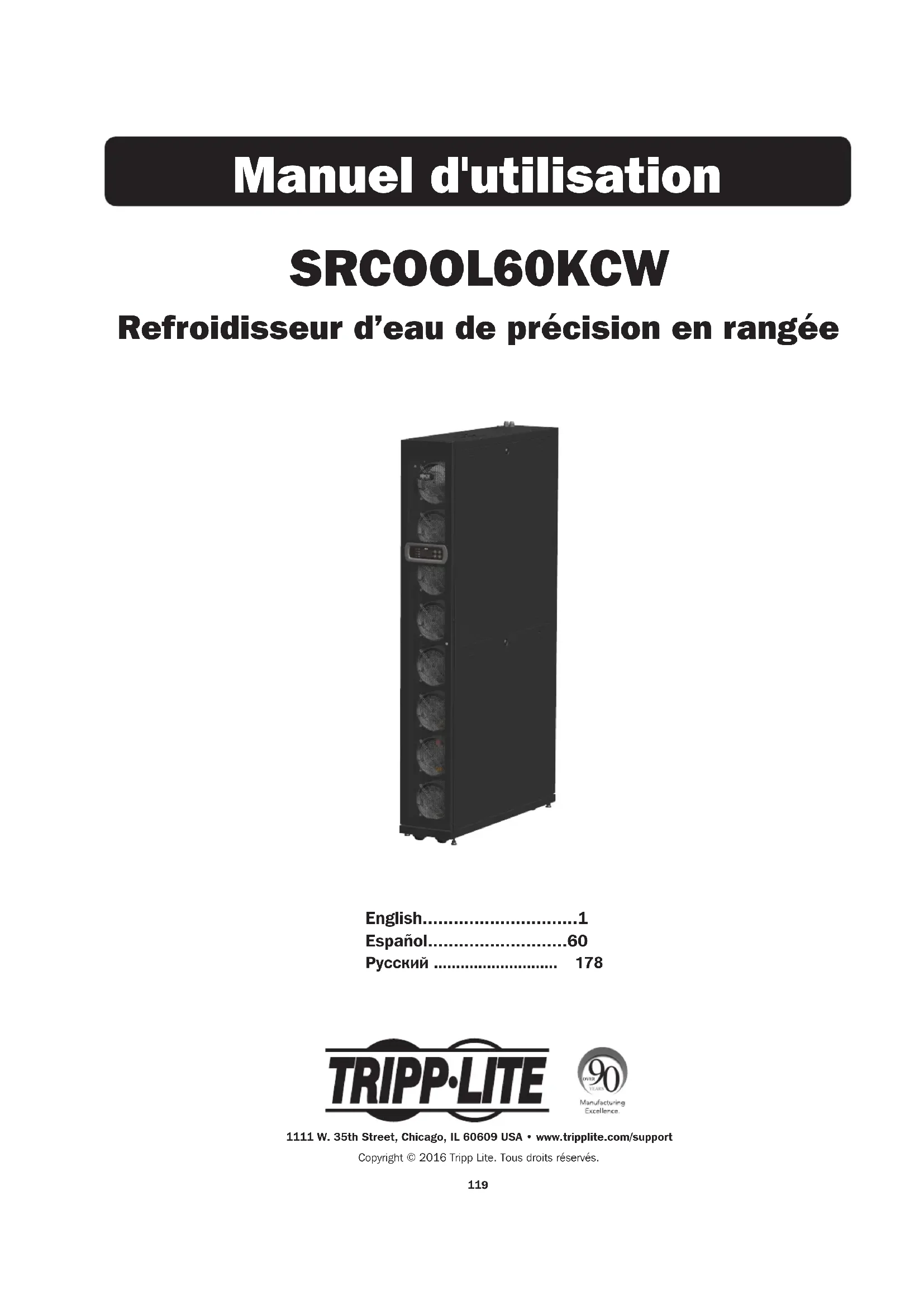 Retrouvez gratuitement la notice de l'appareil SmartRack SRCOOL60KCW Tripp Lite au format PDF.