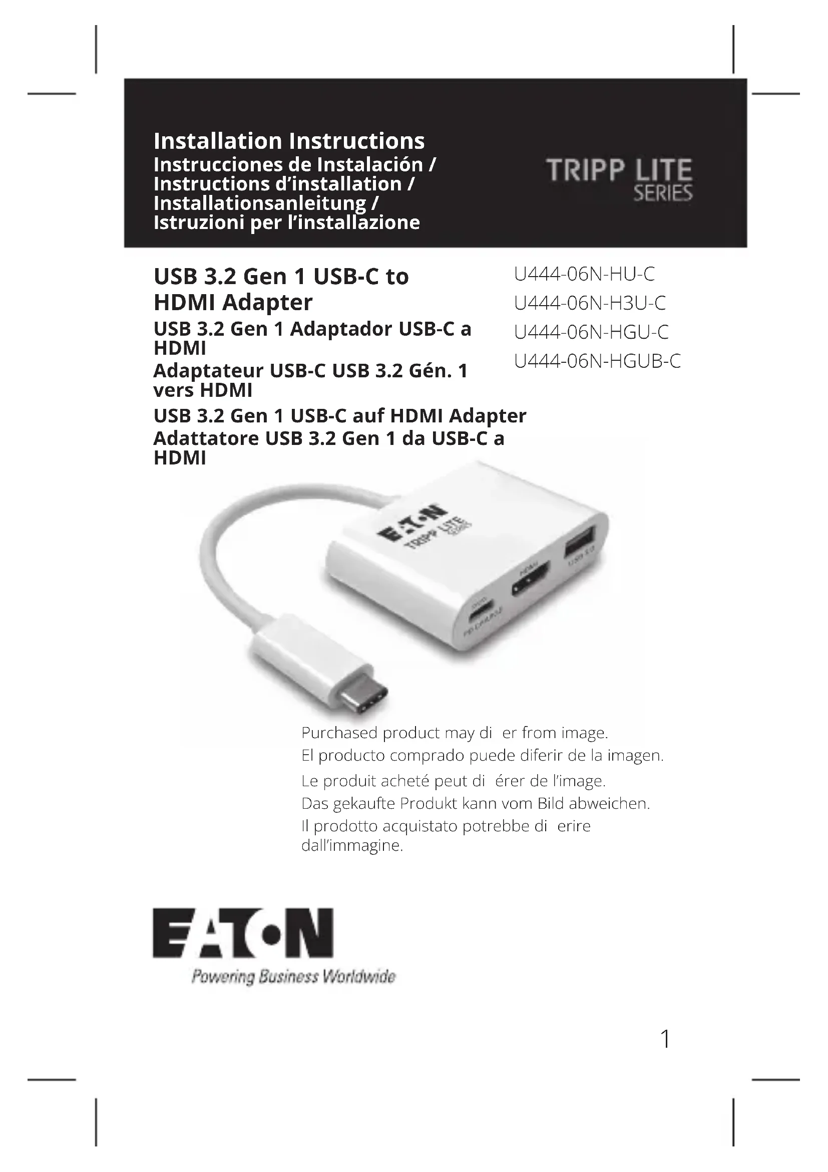 mediante un cable UTP (como los cables Cat6 de la serie N201).* *Consulte la tabla de funciones de USB-C del Manual del propietario para conocer las características que admite su producto.4 Installation Instalación / Installation / Installation / Installazione Français Remarque : lorsque l’appareil est connecté au port USB-C de votre ordinateur et à un réseau via le câblage Cat5e/6, une connexion réseau sera automatiquement établie. Si aucune connexion n’est établie, vous pouvez en établir une manuellement en allant sur la page des paramètres réseau de votre ordinateur. Par exemple, sur un ordinateur Mac, naviguez jusqu’à la section Réseau qui se trouve dans les préférences système, cliquez sur le bouton « Assistez-moi » pour accéder à l’assistant de configuration réseau, puis suivez les instructions pour établir une connexion.