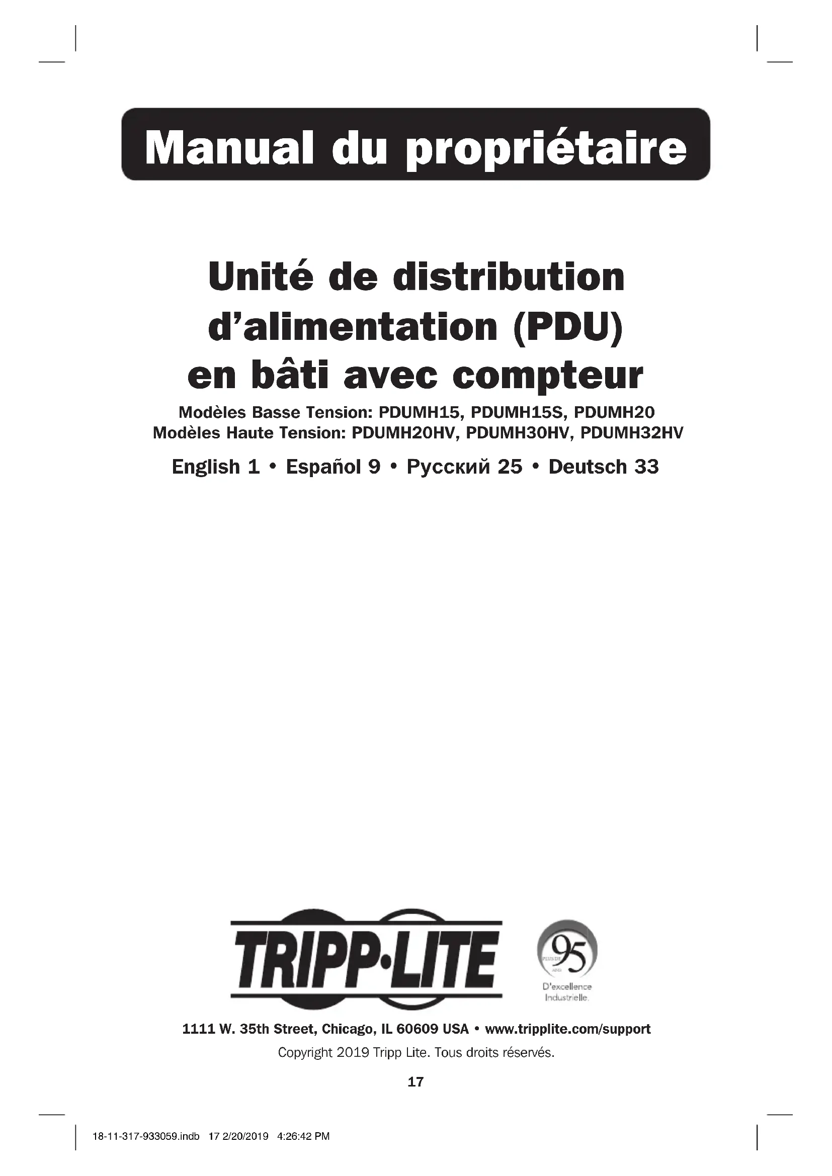 MODE D'EMPLOI PDUMH30HV Tripp Lite