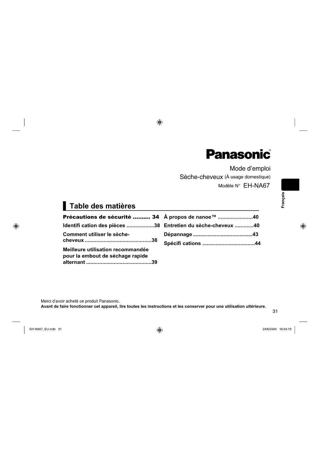 MODE D'EMPLOI EHNA67 PANASONIC
