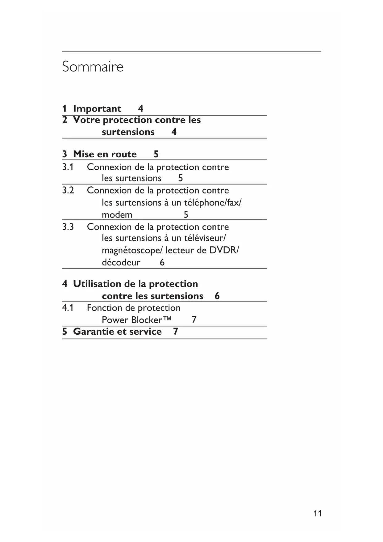 1 Important 4 2 Votre protection contre les surtensions 4 3 Mise en route 5
