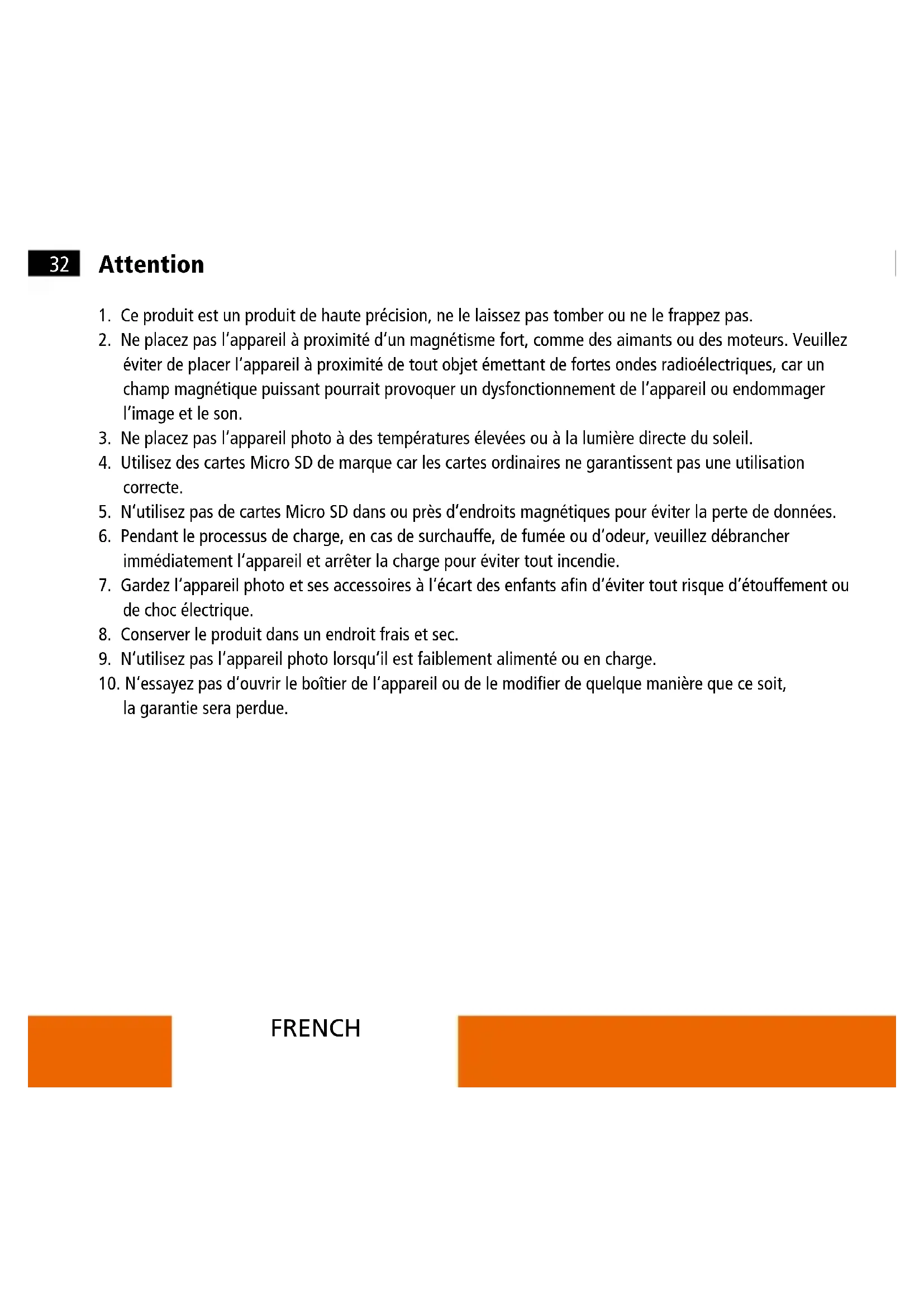 7. Gardez l‘appareil photo et ses accessoires à l‘écart des enfants afin d‘éviter tout risque d‘étouffement ou