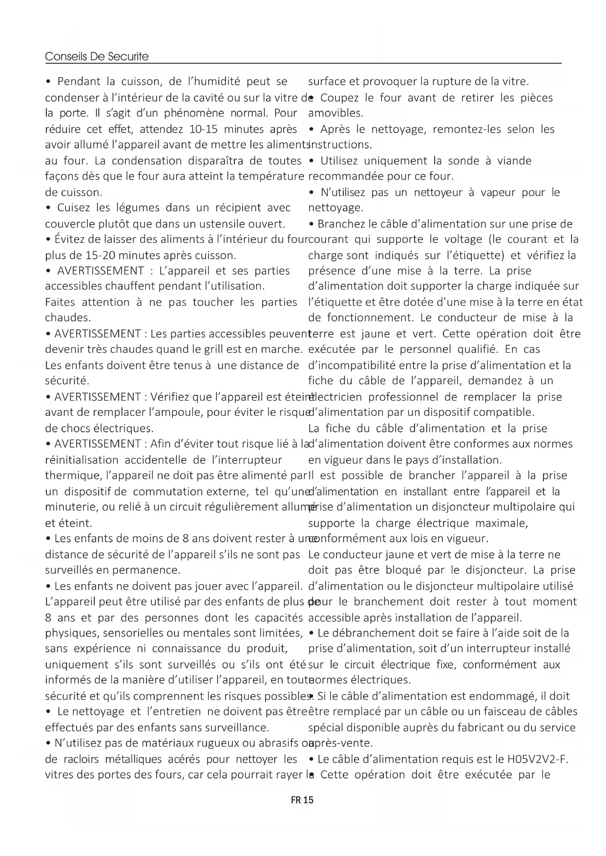 - Cette opération doit être exécutée par le Conseils De Securite FR 15personnel qualifié. Le conducteur de mise à la terre (jaune et vert) doit être environ 10 mm plus long que les autres conducteurs. Pour toutes réparations, contactez le service après-vente en insistant sur l’utilisation de pièces de rechange d’origine.