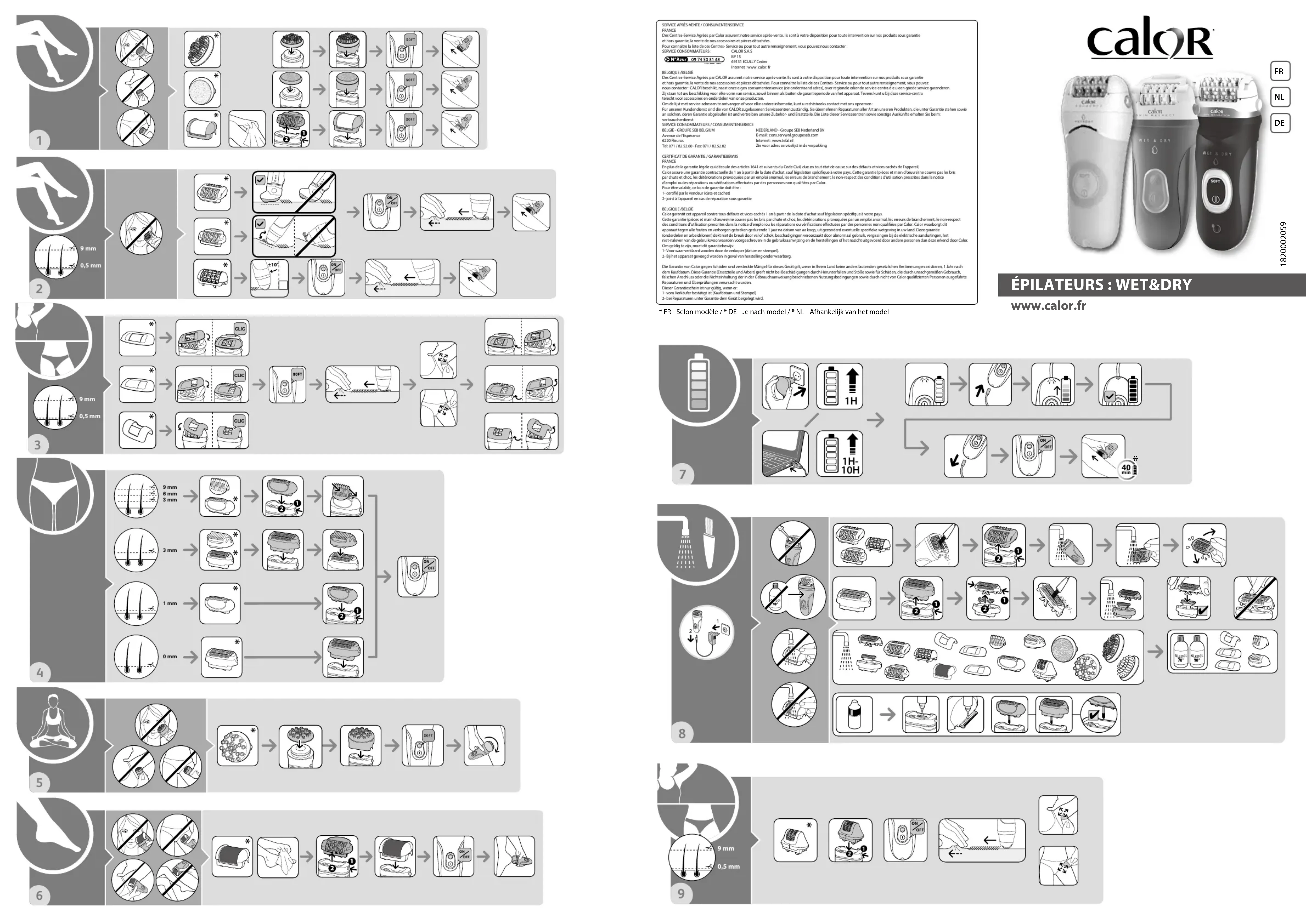 - Ne pas utiliser par température inférieure à 0 °C et supérieure à 35 °C. GARANTIE Votre appareil est destiné à un usage domestique seulement. Il ne peut être utilisé à des fins professionnelles. La garantie devient nulle et invalide en cas d’utilisation incorrecte. PARTICIPONS À LA PROTECTION DE L’ENVIRONNEMENT ! Votre appareil contient de nombreux matériaux valorisables ou recyclables et des bat- teries rechargeables Lithium-ion. Confiez celui-ci dans un point de collecte ou à défaut dans un centre service agréé pour que son traitement soit effectué. Ces instructions sont également disponibles sur notre site internet www.calor.fr Schoonmaak-en onderhoudswerkzaamhedenmogen nooit door kinderen zonder toezicht uitgevoerd wor den.