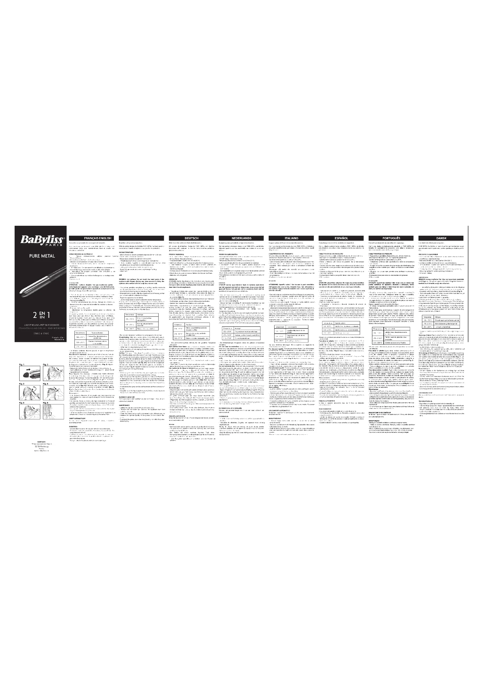 DEUTSCH NEDERLANDS ITALIANO ESPAÑOL PORTUGUÊS DANSK Consulter au préalable les consignes de sécurité. Avec son design parfaitement étudié, PURE METAL de BaByliss est spécialement conçu pour instantanément lisser et boucler vos cheveux à la perfection.
