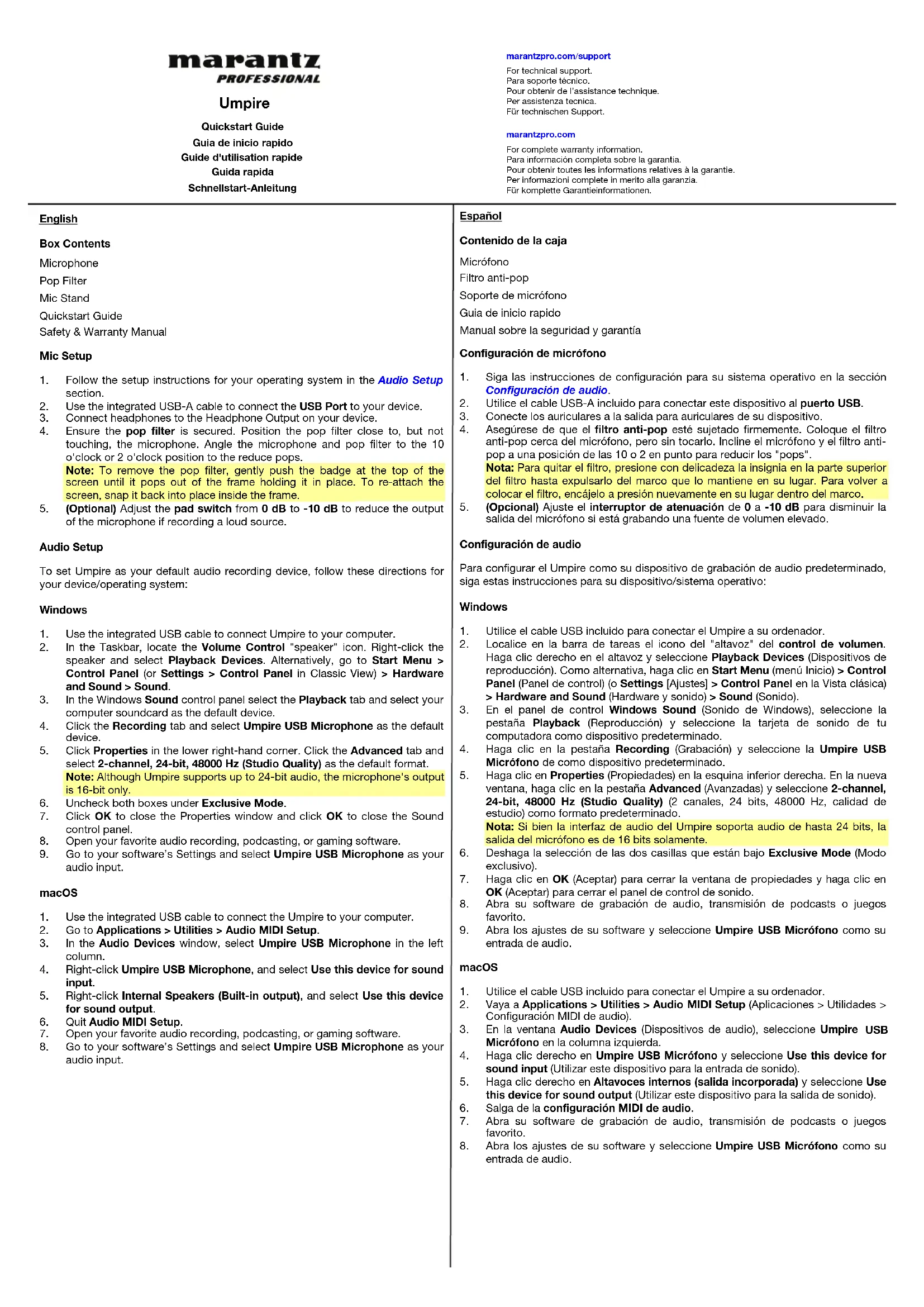 Umpire - Microphone MARANTZ - Notice d'utilisation et mode d'emploi gratuit