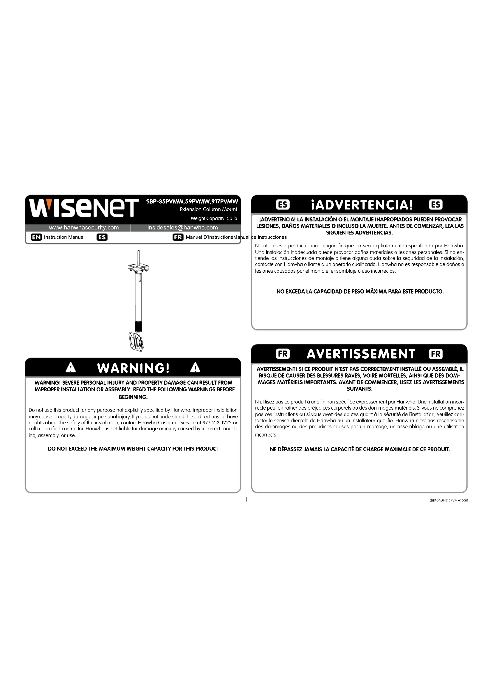 SBP917PVMW - Support mural pour appareil électronique Hanwha - Notice d'utilisation et mode d'emploi gratuit