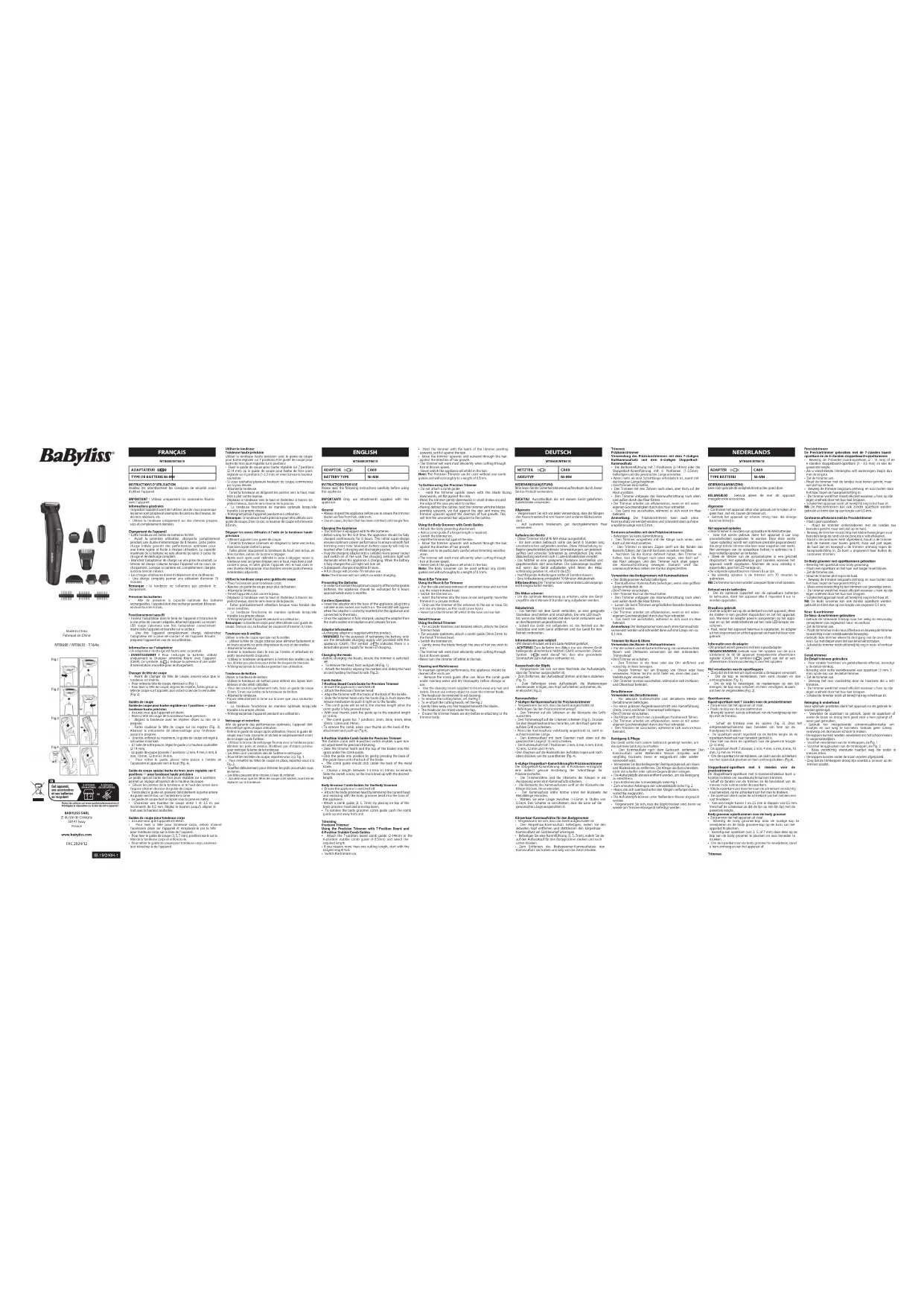 MT860E - Tondeuse à barbe BABYLISS - Notice d'utilisation et mode d'emploi gratuit