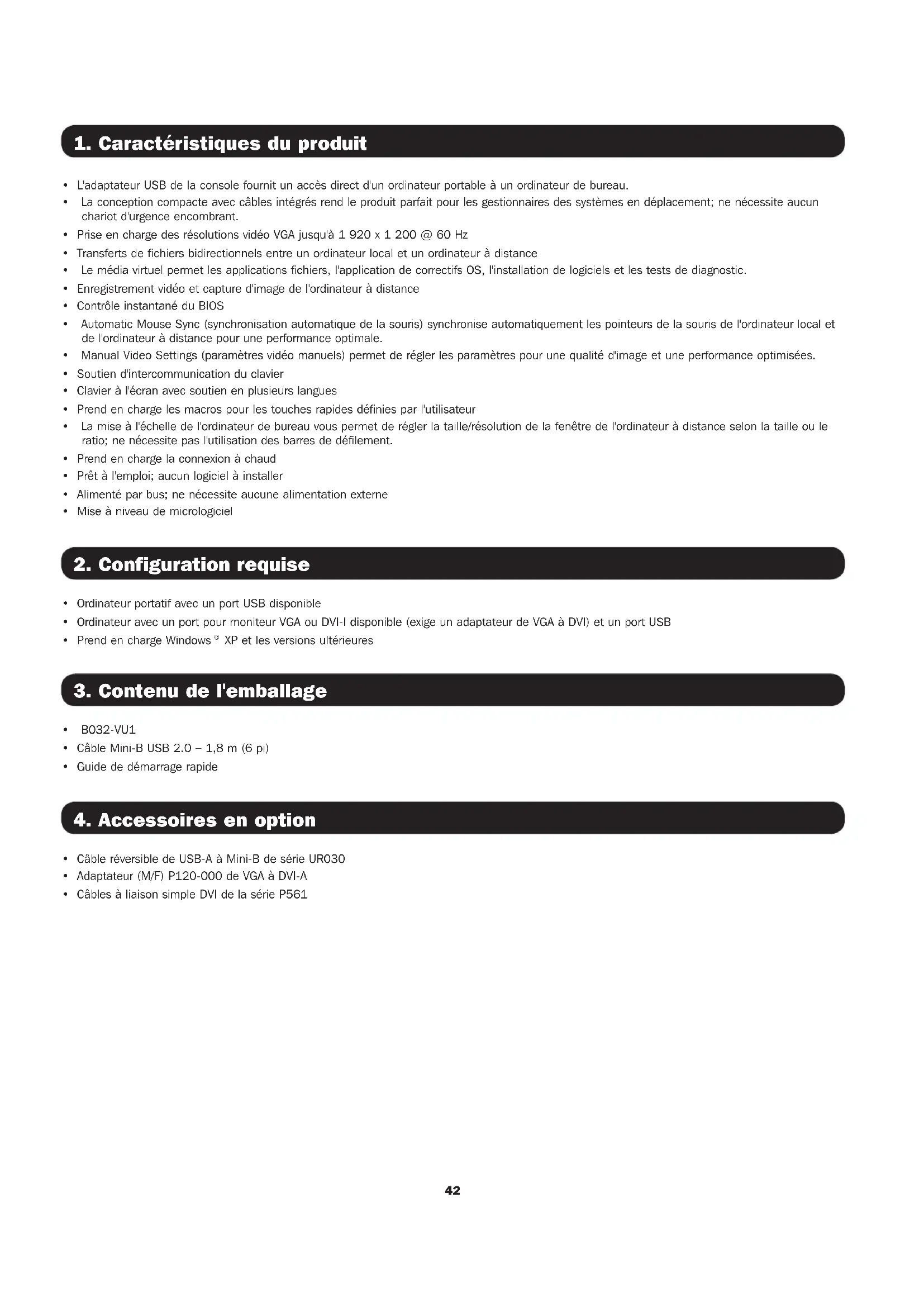1. Caractéristiques du produit ........................42