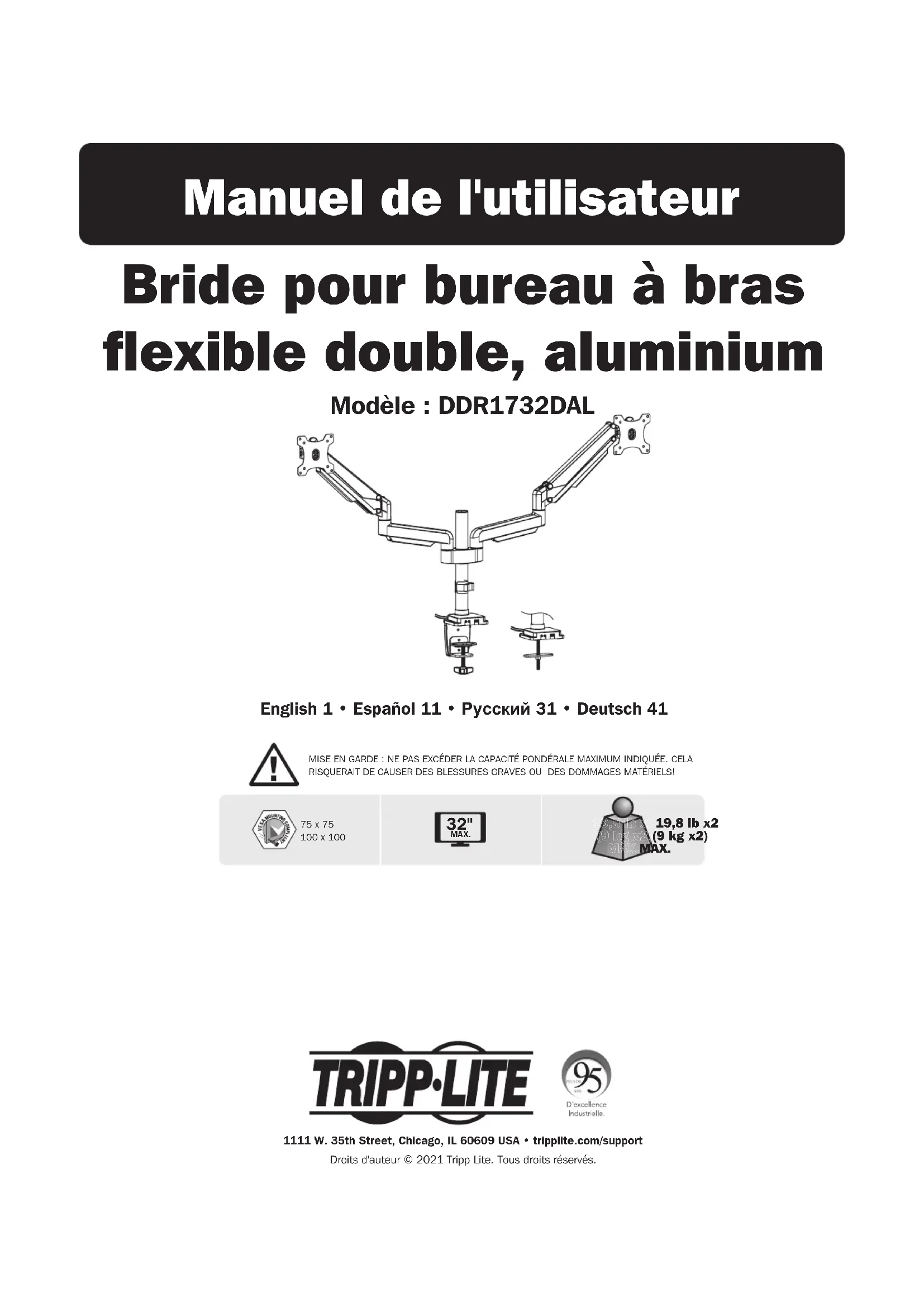 FlexArm DDR1732DAL - Non catégorisé Tripp Lite - Notice d'utilisation et mode d'emploi gratuit