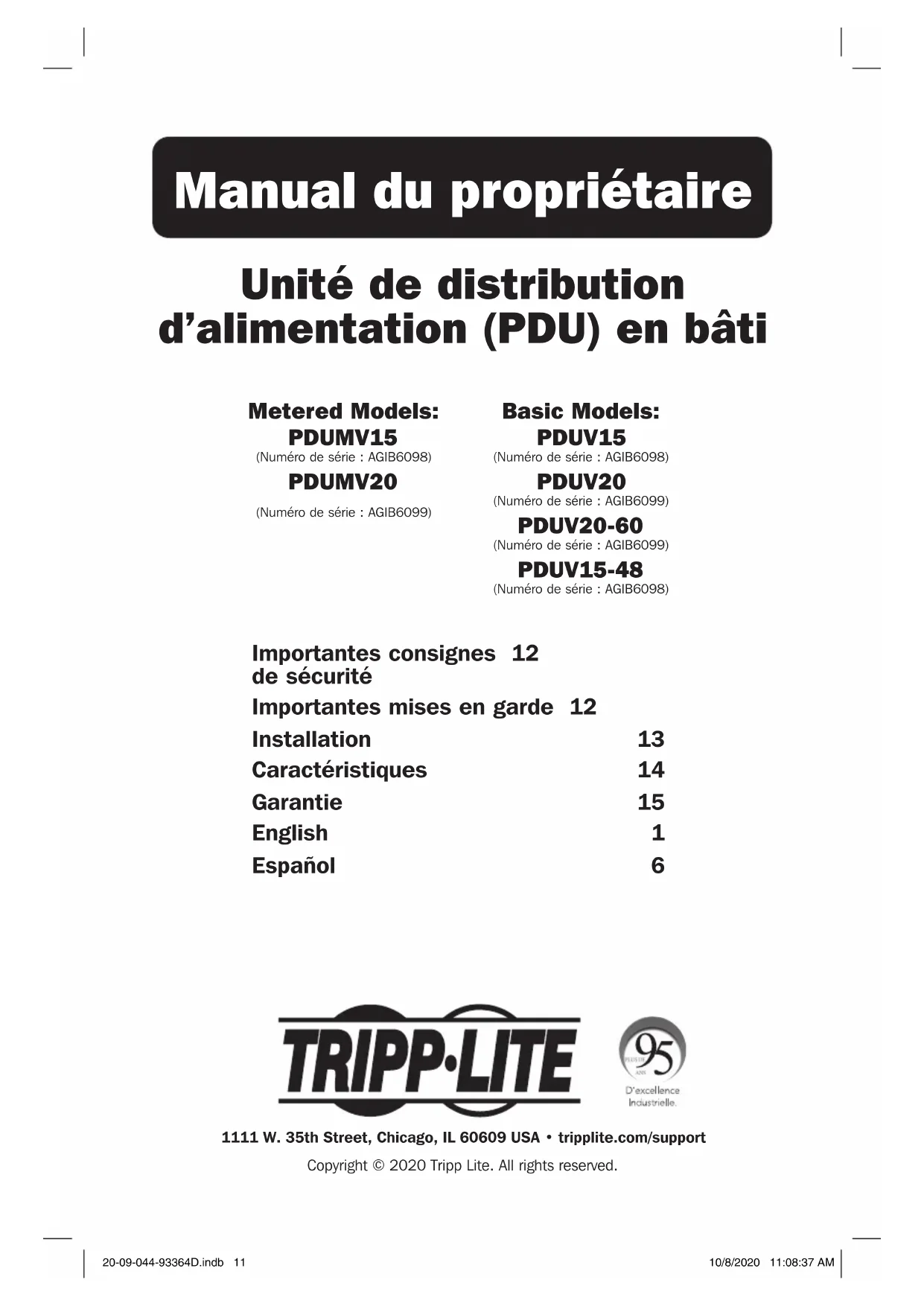 MODE D'EMPLOI PDUV2060 Tripp Lite