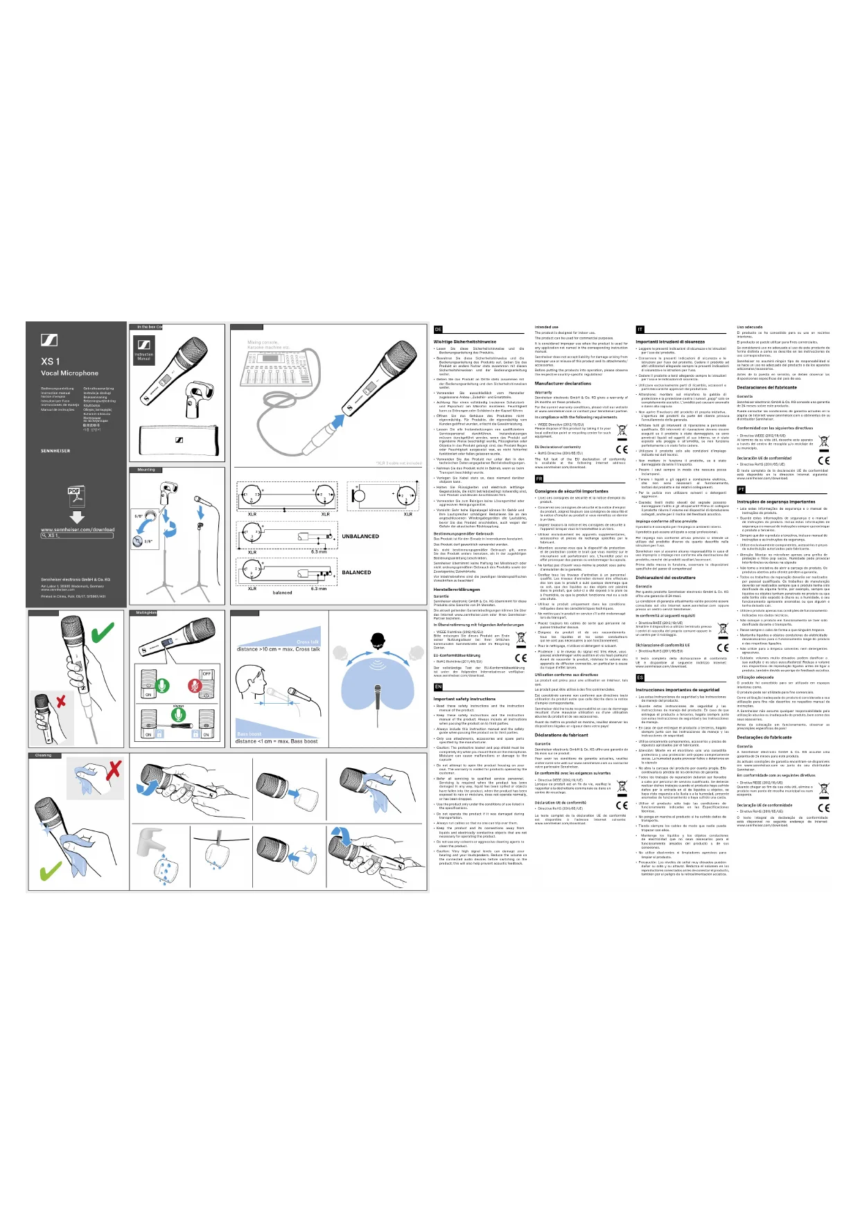 XS 1 - Microphone SENNHEISER - Notice d'utilisation et mode d'emploi gratuit