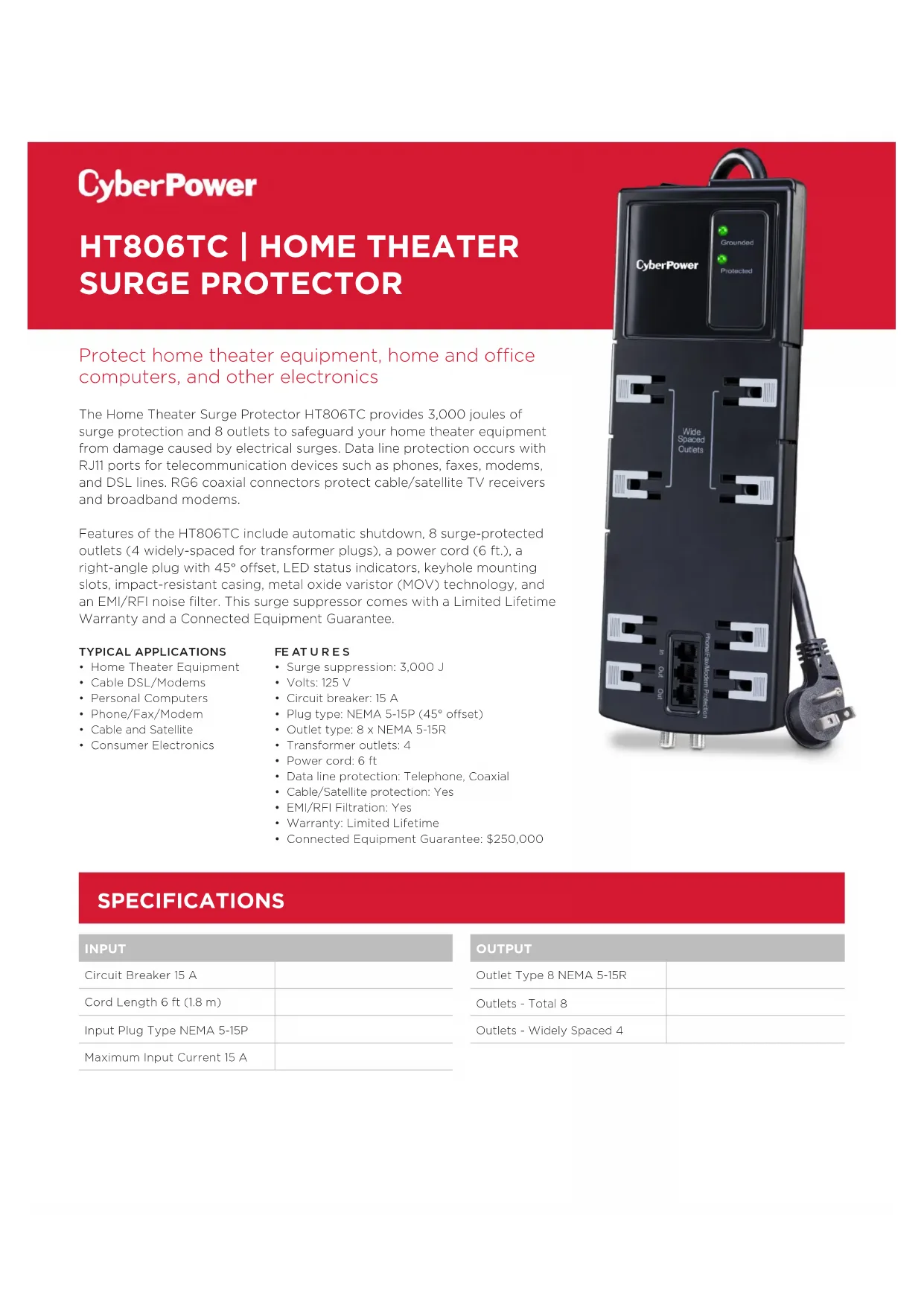Retrouvez gratuitement la notice de l'appareil Home Theater HT806TC CyberPower au format PDF.