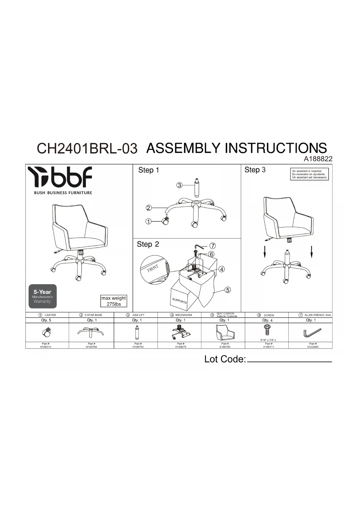 CH2401BRL03 - Chaise de bureau BUSH - Notice d'utilisation et mode d'emploi gratuit