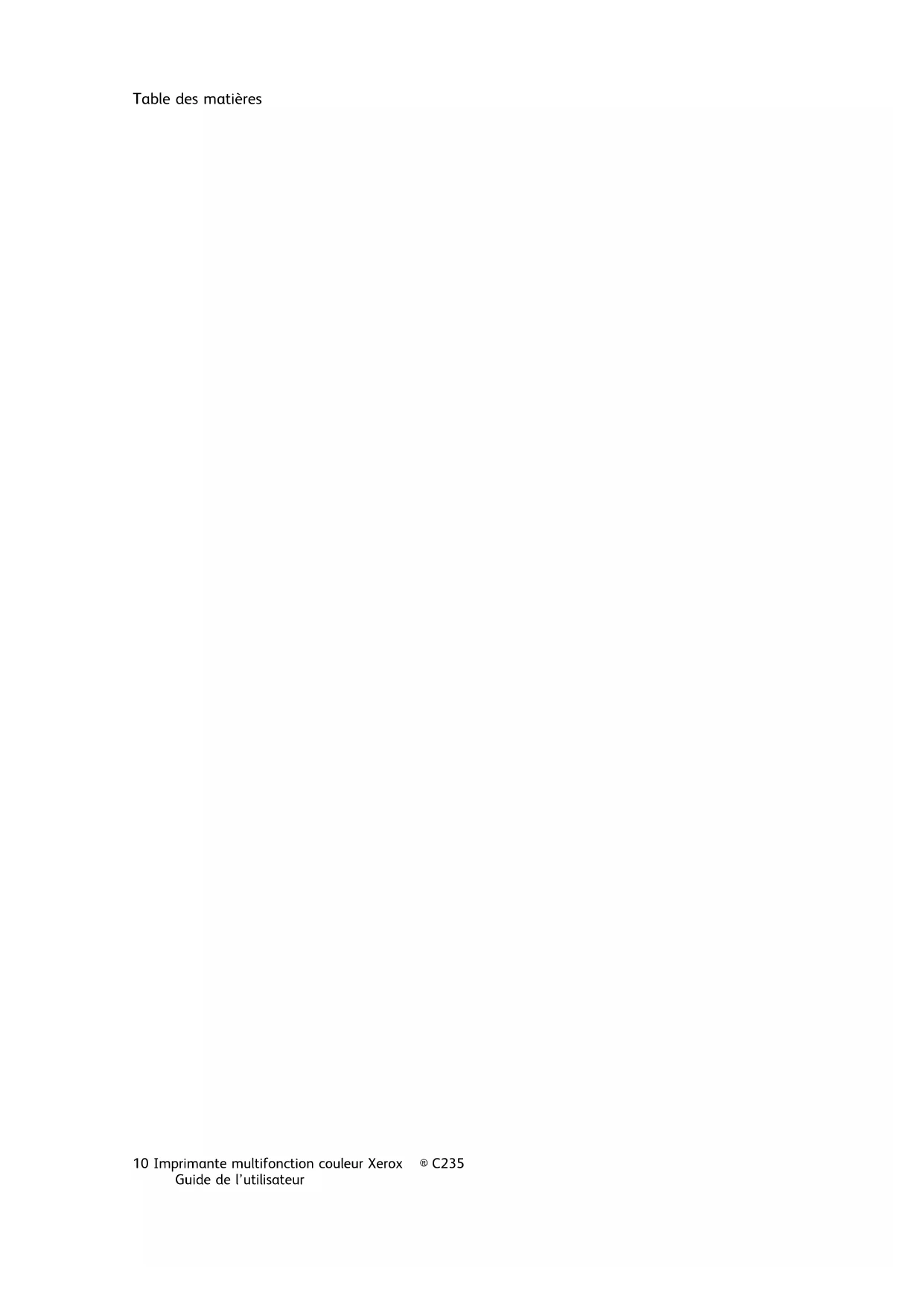 C235 Guide de l’utilisateur Table des matièresImprimante multifonction couleur Xerox