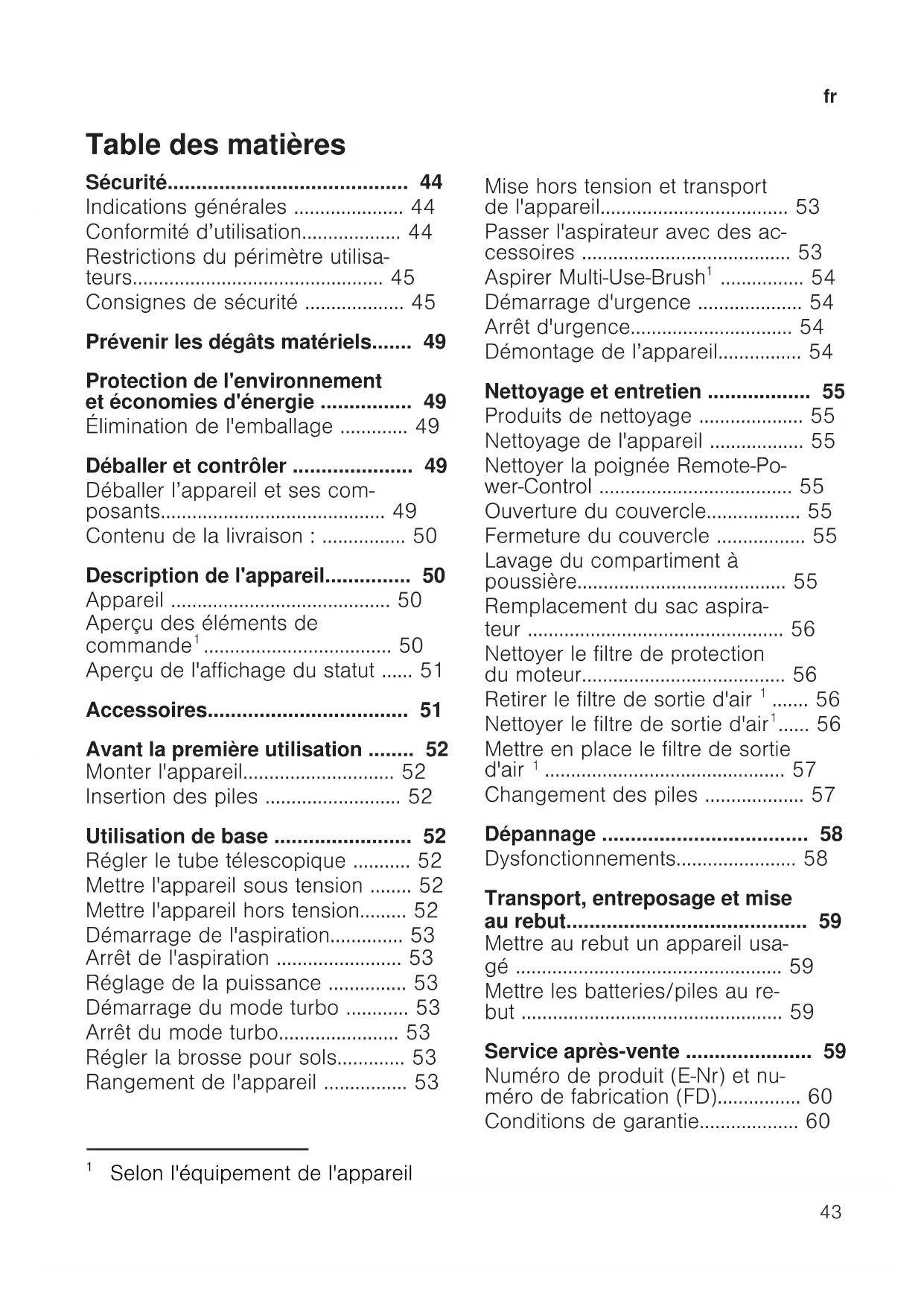 Selon l'équipement de l'appareilNettoyage et entretien fr