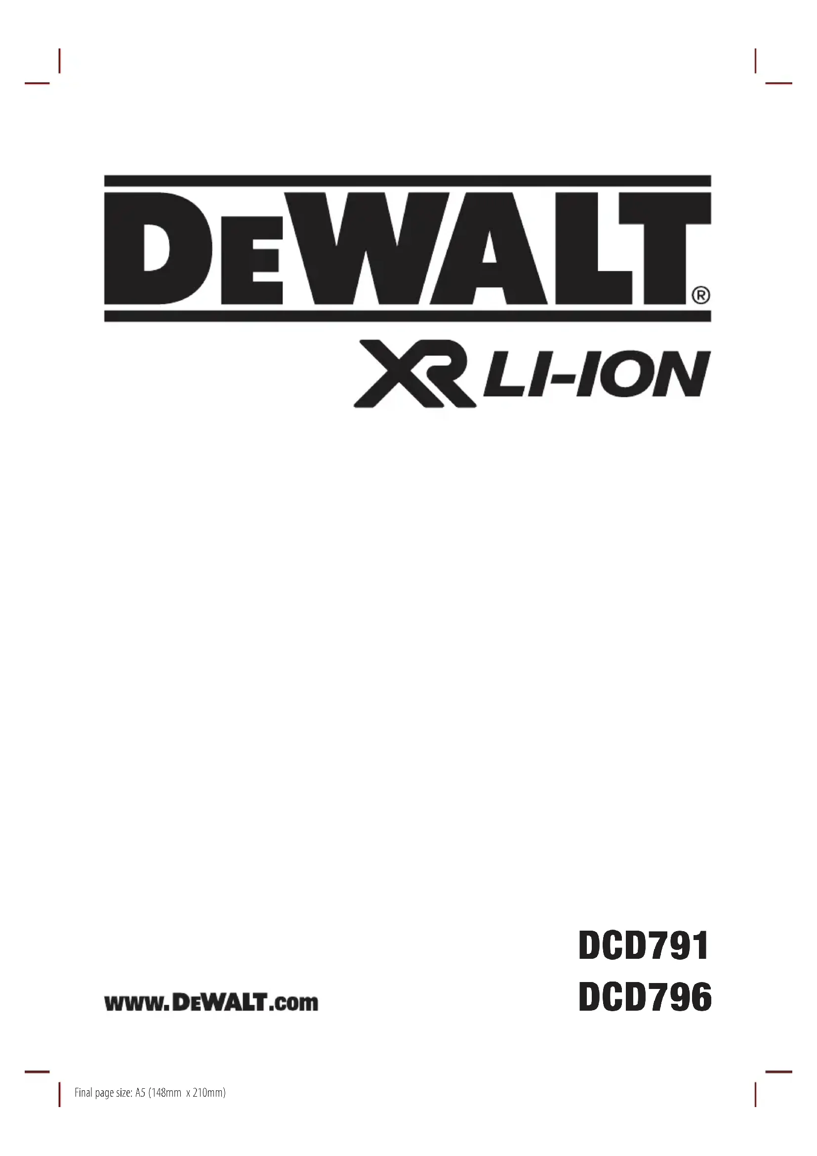 Markus Rompel Directeur Ingénierie DEWALT , Richard-Klinger-Strase 11, Félicitations ! Vous avez choisi un outil DEWALT . Des années d’expertise dans le développement et l’innovation de ses produits ont fait de DEWALT , le partenaire privilégié des utilisateurs professionnels d’outilsélectriques. Fiche technique DCD791 DCD796 Tension V