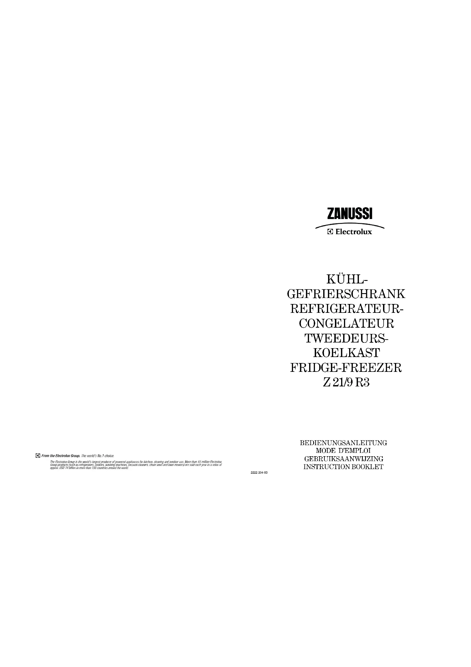Z219R3 - Réfrigérateur Zanussi-Electrolux - Notice d'utilisation et mode d'emploi gratuit