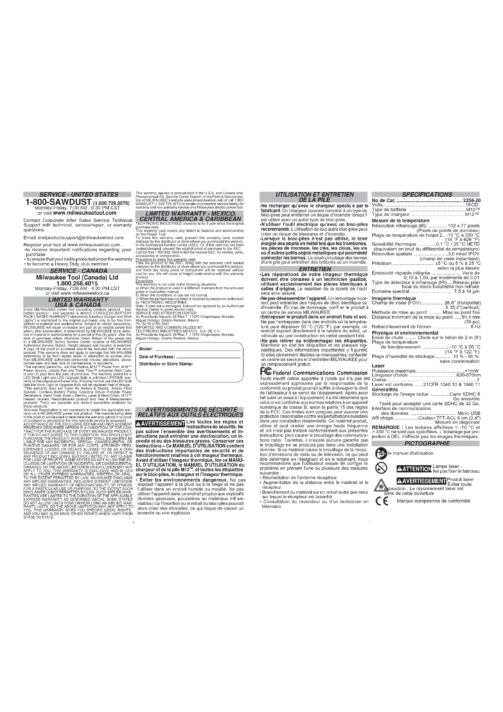 AVERTISSEMENT Lire toutes les règles et instructions de sécurité. Ne pas suivre l'ensemble des avertissements et instructions peut entraîner une électrocutio, un incendie et /ou des blessures graves. Conserver ces instructions - Ce MANUEL D'UTILISATION contient des instructions importantes de sécurité et de fonctionnement relatives à cet imageur thermique. Avant d'utiliser l'imageur thermique, lire ce MANUEL D'UTILISATION, le MANUEL D'UTILISATION du chargeur et de la pile M12^m, et toutes les étiquettes sur le bloc-piles, le chargeur et l'imageur thermique.