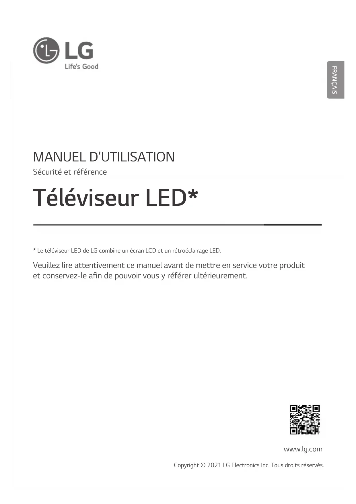 Veuillez lire attentivement ce manuel avant de mettre en service votre produit et conservez-le afin de pouvoir vous y référer ultérieurement. www.lg.com Copyright © 2021 LG Electronics Inc. Tous droits réservés.
