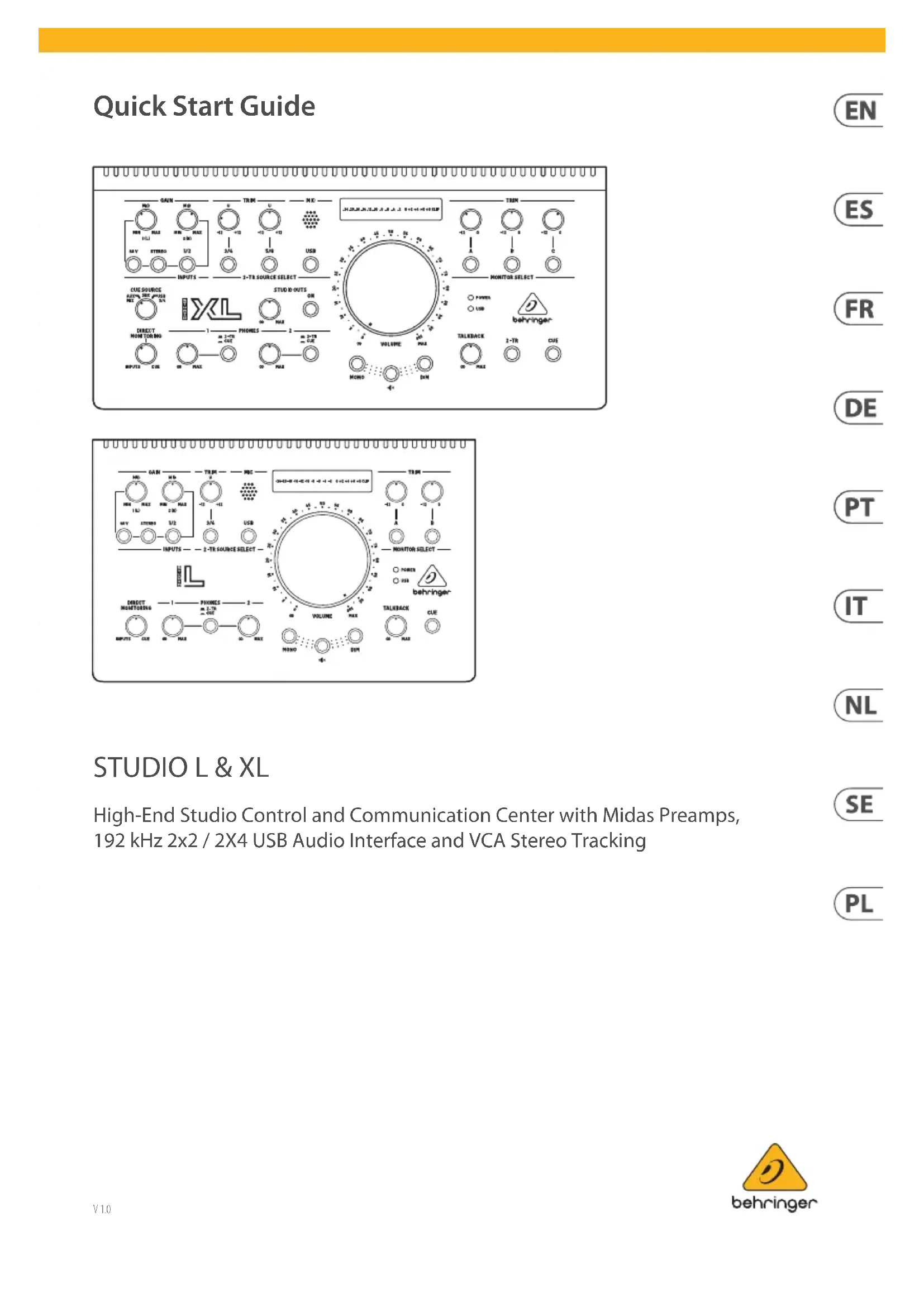 STUDIO XL - Non catégorisé BEHRINGER - Notice d'utilisation et mode d'emploi gratuit