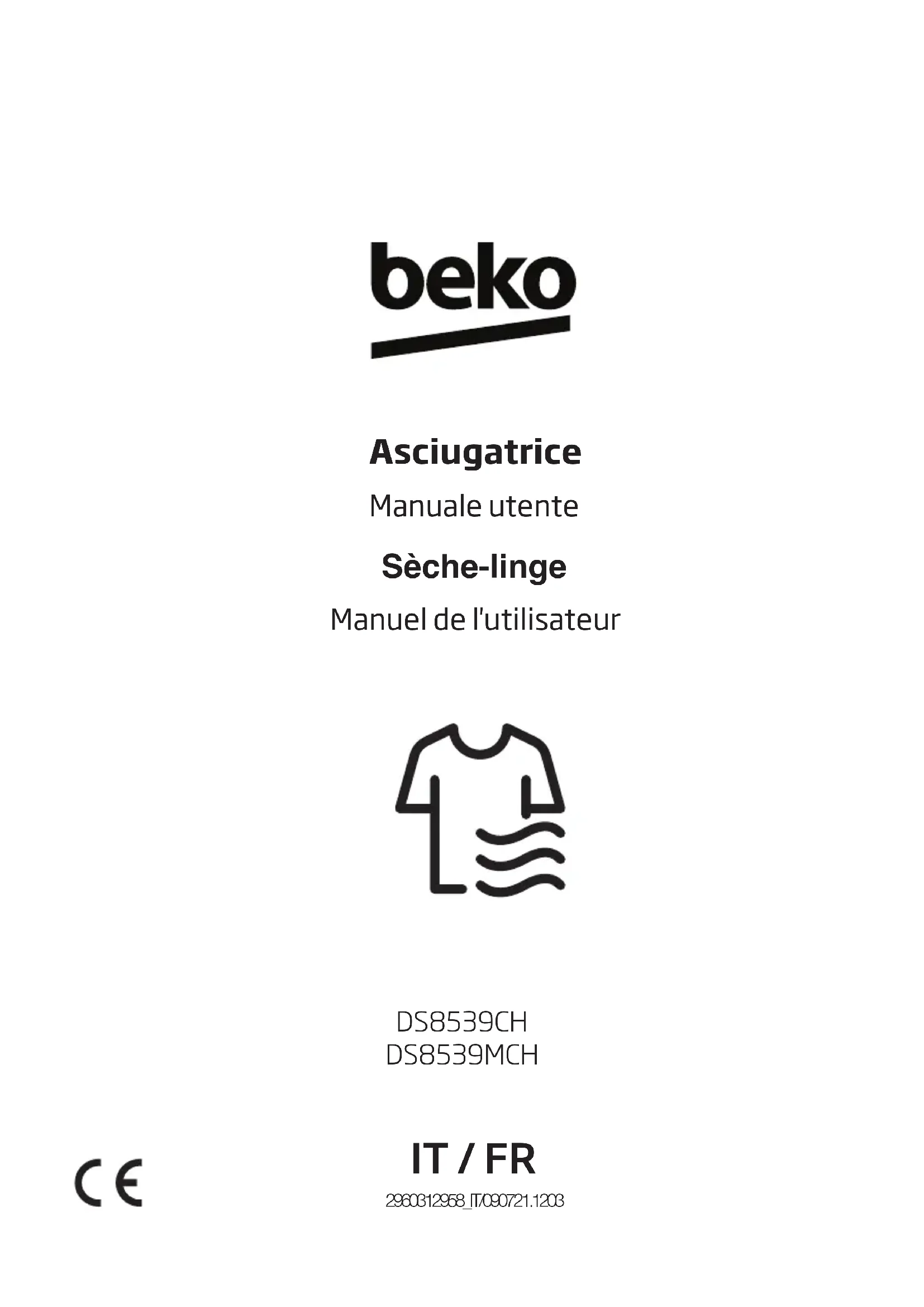BEKO DS8539CH / 7188287130 DS8539MCH / 7188383080Ce produit a été fabriqué à l’aide de la technologie de pointe et dans des conditions respectueuses de l’environnement Veuillez d’abord lire ce manuel ! Chère cliente, cher client, Nous vous remercions d’avoir choisi un appareil Beko. Nous espérons que votre appareil qui a été fabriqué avec des matériaux de haute qualité et une technologie de pointe vous offrira les meilleurs résultats. Nous vous conseillons de lire attentivement ce manuel et tout autre document fourni avant d’utiliser votre appareil et de le conserver à titre de référence. Si vous cédez l’appareil à quelqu’un d’autre, donnez-lui aussi le manuel. Prêtez attention à tous les détails et aux mises en garde indiquées dans le manuel d’utilisation et suivez les instructions qui y sont inscrites. Utilisez ce manuel d’utilisateur pour le modèle indiqué sur la page de couverture.