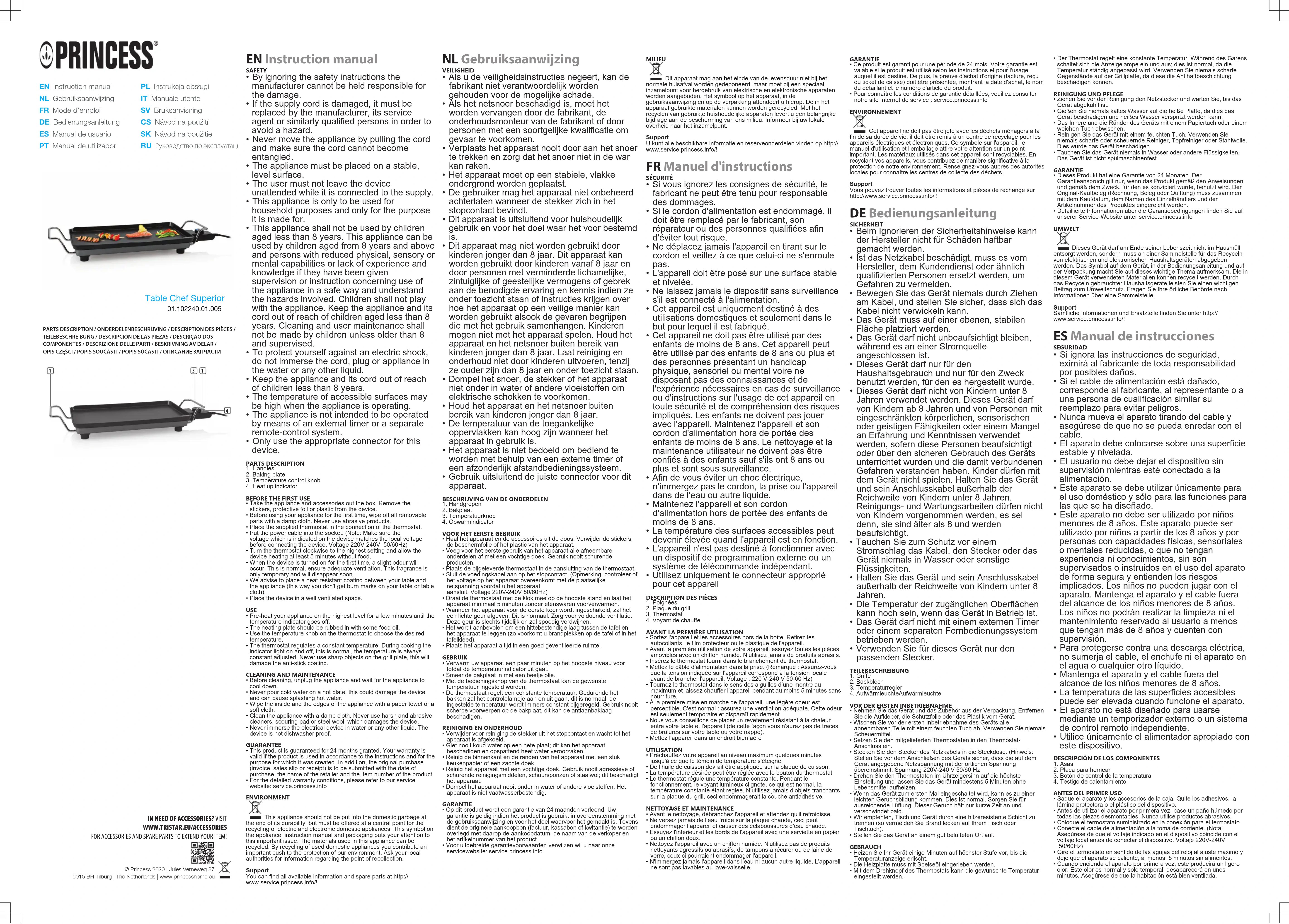 Retrouvez gratuitement la notice de l'appareil Table Chef Superior PRINCESS au format PDF.