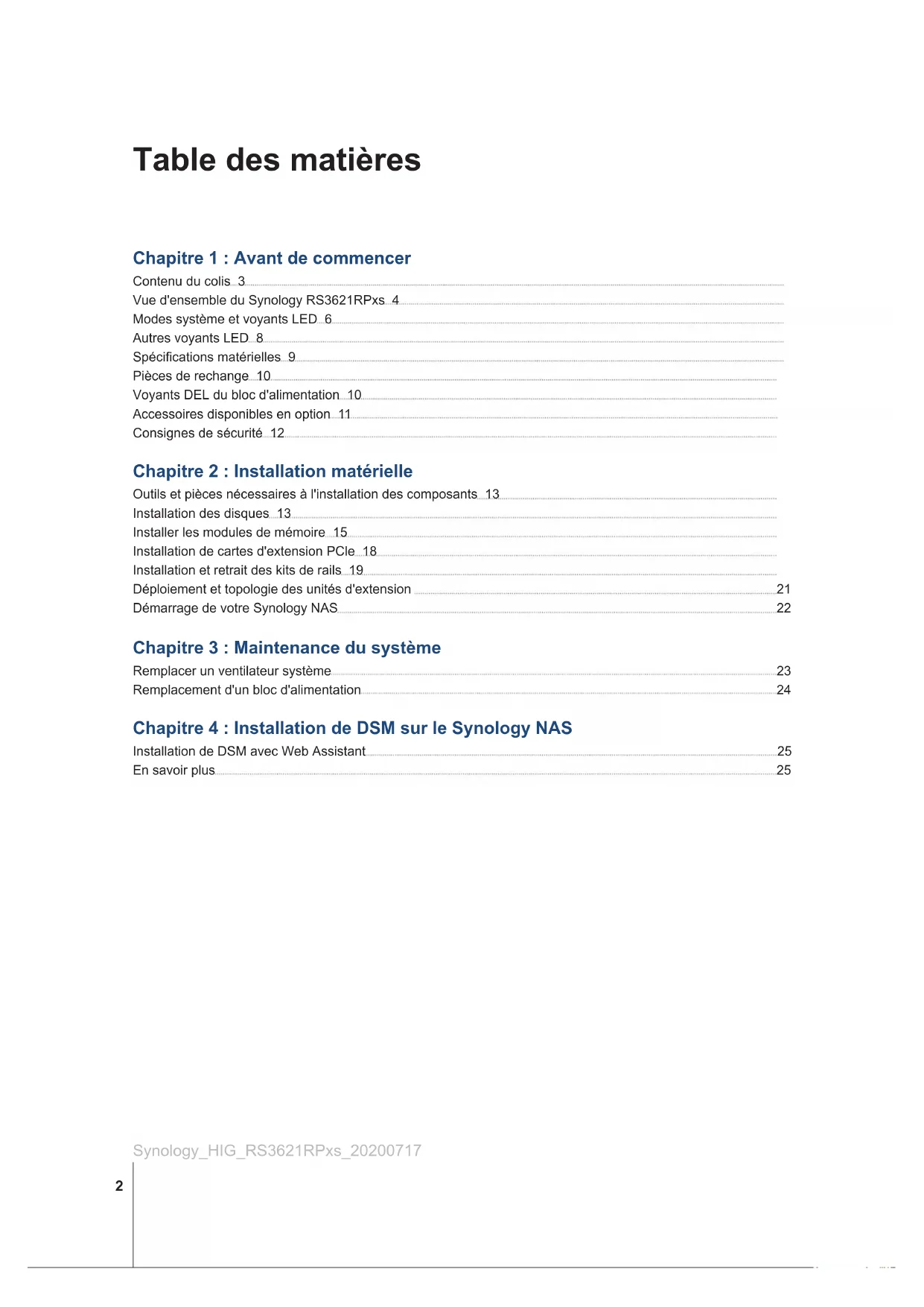 Synology NAS RS3621RPxs Guide d'installation matérielleTable des matières
