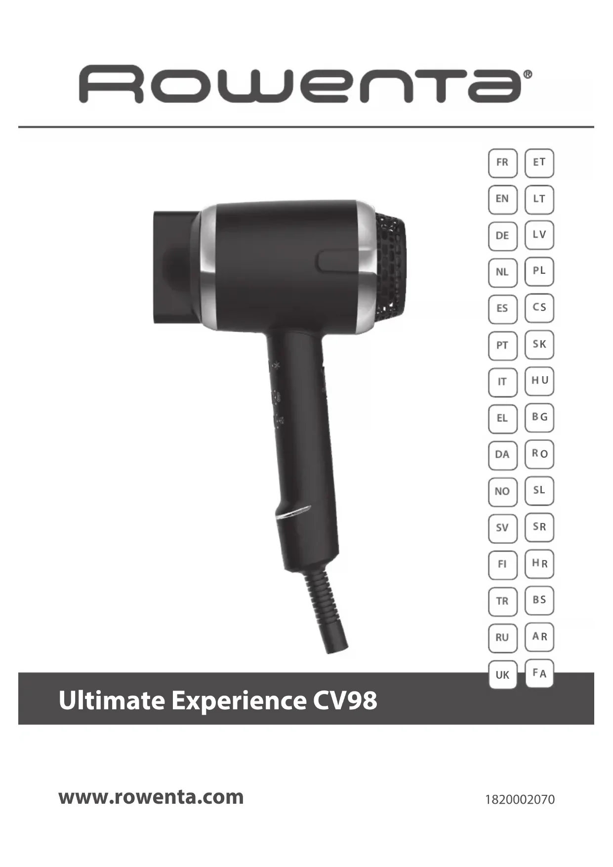 | Caractéristiques techniques | Sèche-cheveux Rowenta Ultimate Experience CV9820 |