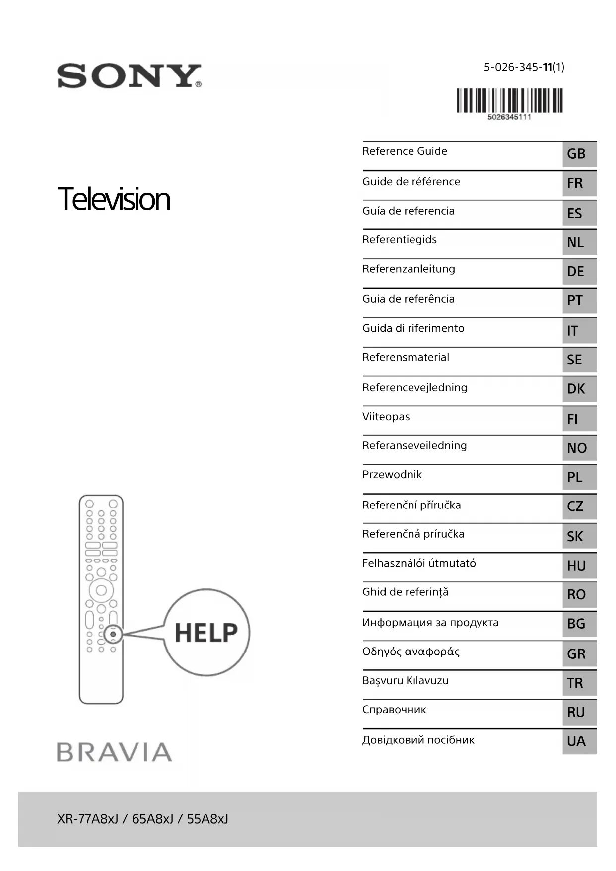 - Vous pouvez vous reporter au Guide d’aide avec votre smartphone. https://rd1.sony.net/help /tv/iaep1/h_aep/ IMPORTANT – Lisez le Contrat de licence logicielle de l’utilisateur final avant d’utiliser votre produit Sony. Utiliser votre produit indique vous avez accepté le Contrat de licence logicielle de l’utilisateur final. Le contrat de licence logicielle entre vous et Sony est disponible en ligne sur le site Web Sony (https://www.sony.net/tv-software-licenses/) ou sur l’écran de votre produit. Appuyez sur (Paramètres rapides) sur la télécommande et sélectionnez [Paramètres] t [Système] t [À propos] t [Informations légales] t [Avis et licences].D:\SONY TV\SY21_AT_CEP_RG_111\5026345111\02FR\5026345111_02FR.fm master page: Right XR-77A8xJ / 65A8xJ / 55A8xJ 5-026-345-11(1)