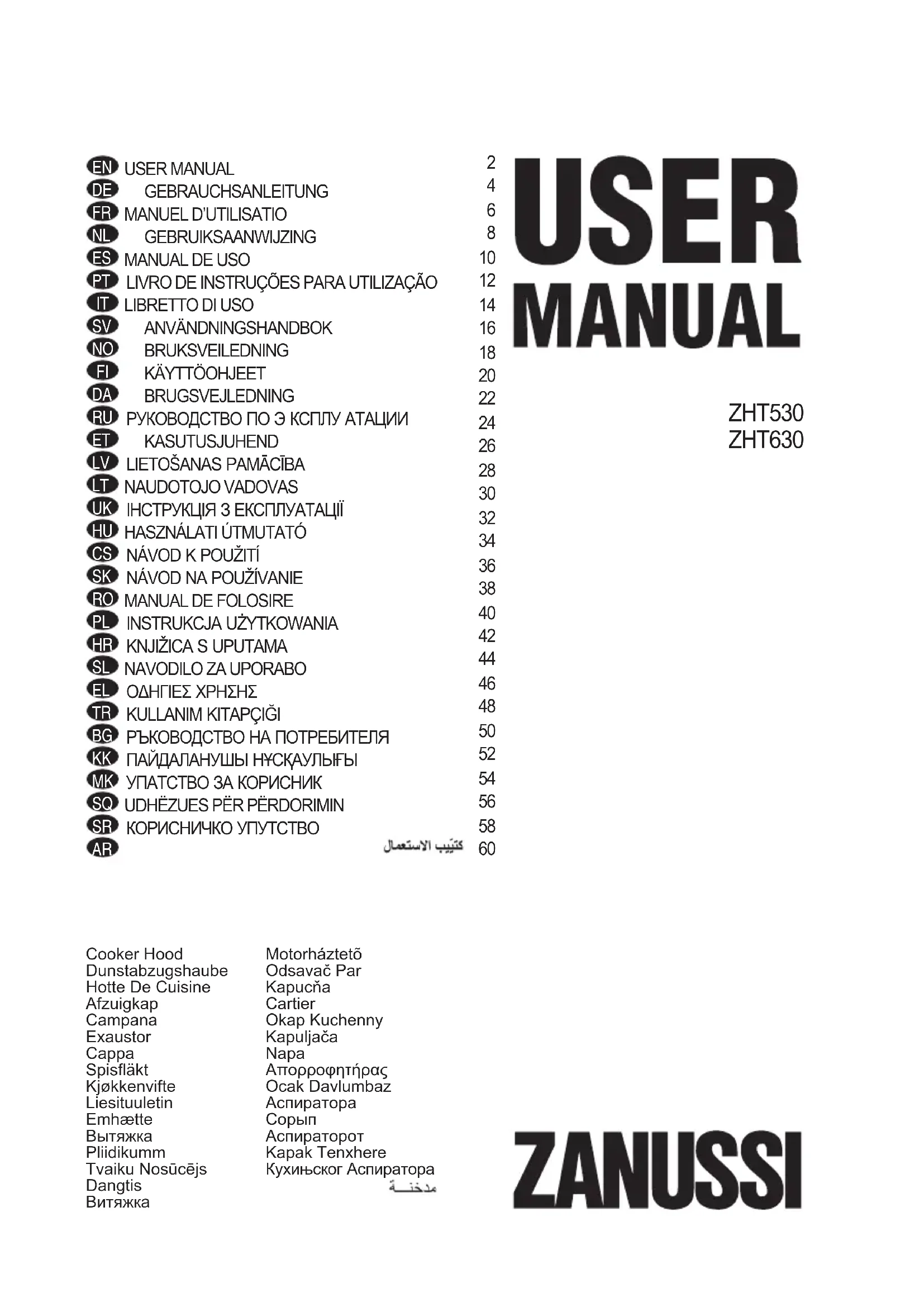 ZHT630B - Hotte ZANUSSI - Notice d'utilisation et mode d'emploi gratuit